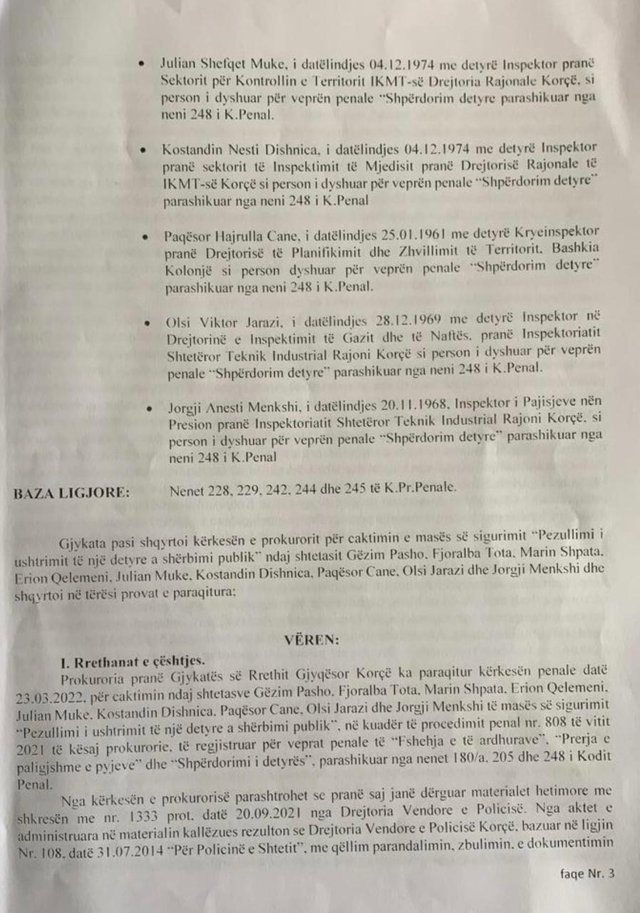 Abuzuan me lejet për prerjen e pyjeve, dosja për 9 zyrtarët e pezulluar të pyjores në Korçë, Tiranë e Kolonjë, në SPAK! Në përgjime edhe kryebashkiaku Erion Isai