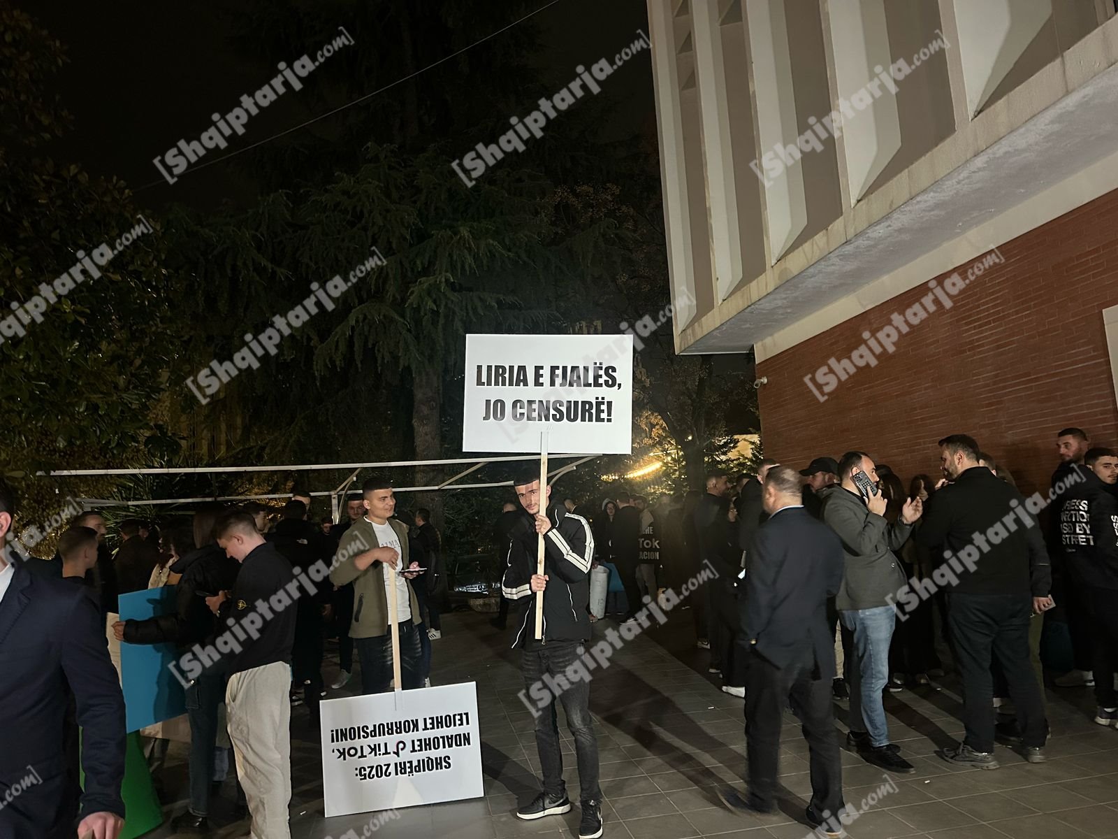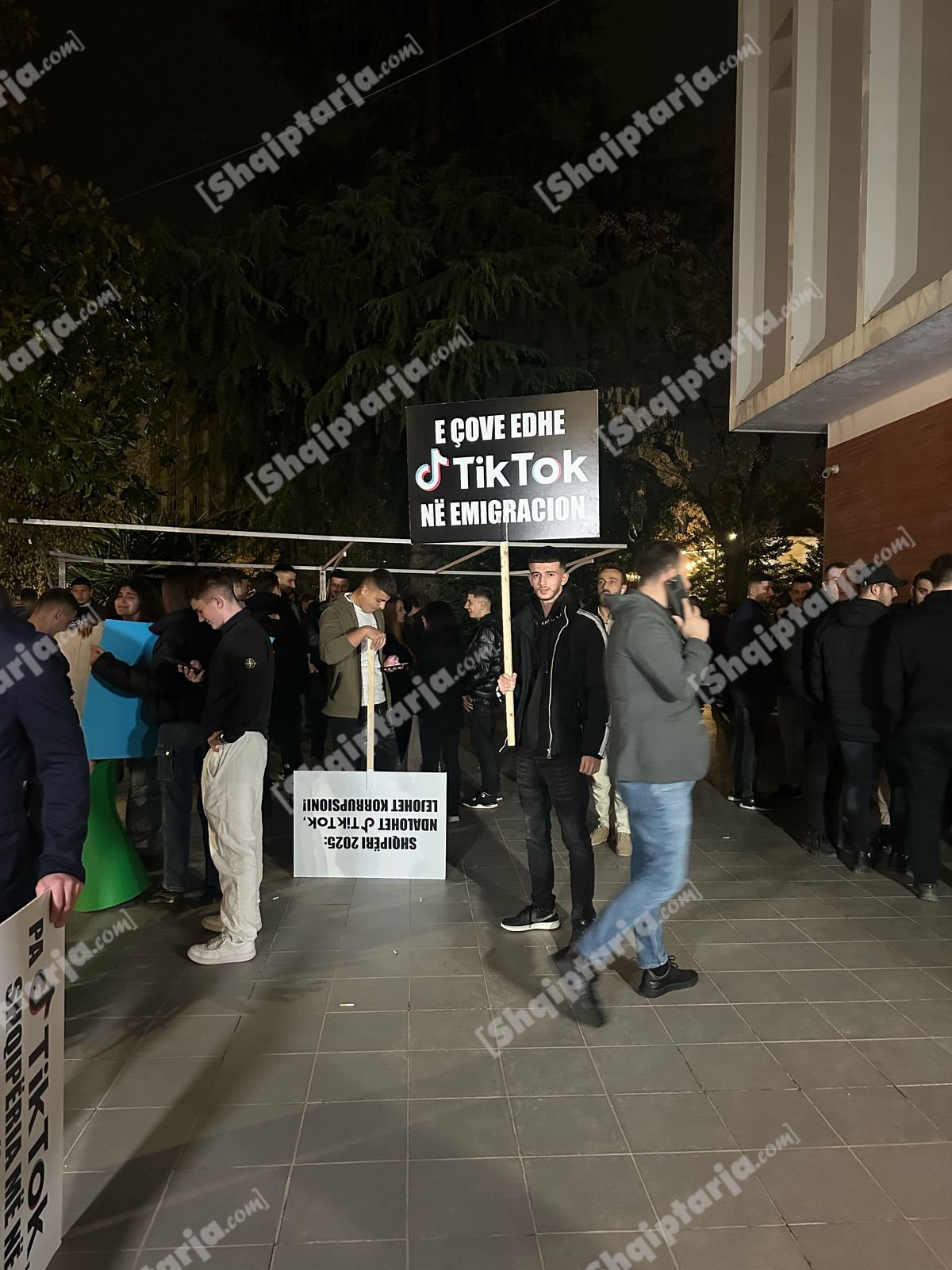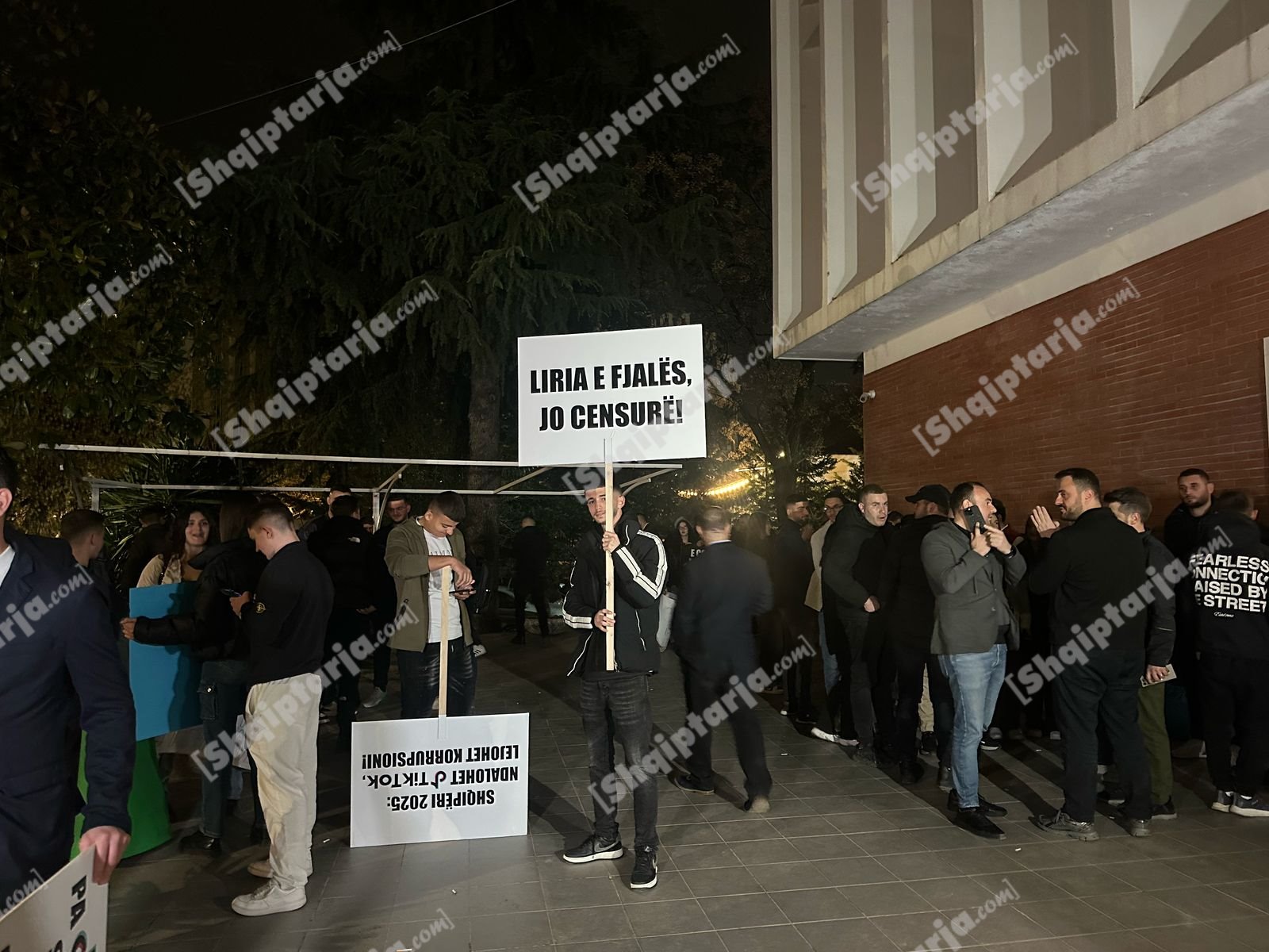 Foto nga protestuesit me pankarta