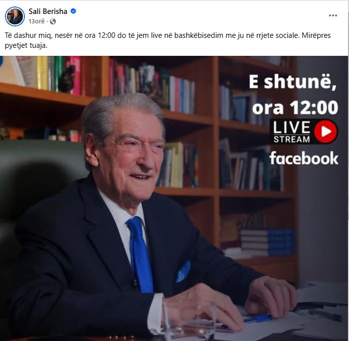 Kreu i Partisë Demokratike, Sali Berisha është masakruar nga fansat në rrjetet sociale. Në një postim në Facebook, të bërë mbrëmjen e djeshme, Berisha informon fansat se do të zhvillojë një bashkëbisedim live me qytetarët, por ky postim është pritur me lumë kritikash.