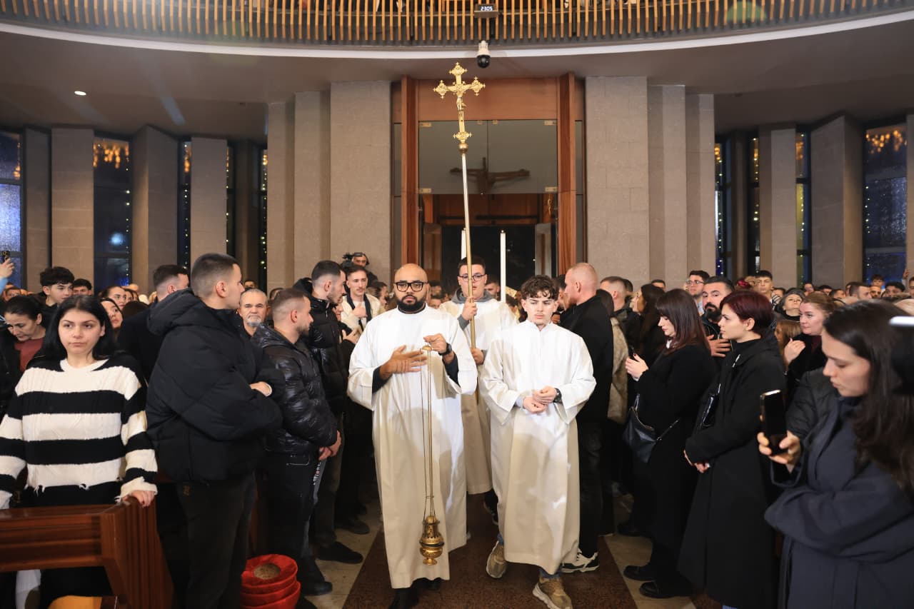 Besimtarë katolikë kremtojnë Krishtlindjen në katedralen ‘Shën Pali’ në Tiranë, Imzot Arjan Dodaj: Ecim me gëzim dhe shpresë përballë çdo zhgënjimi njerëzor