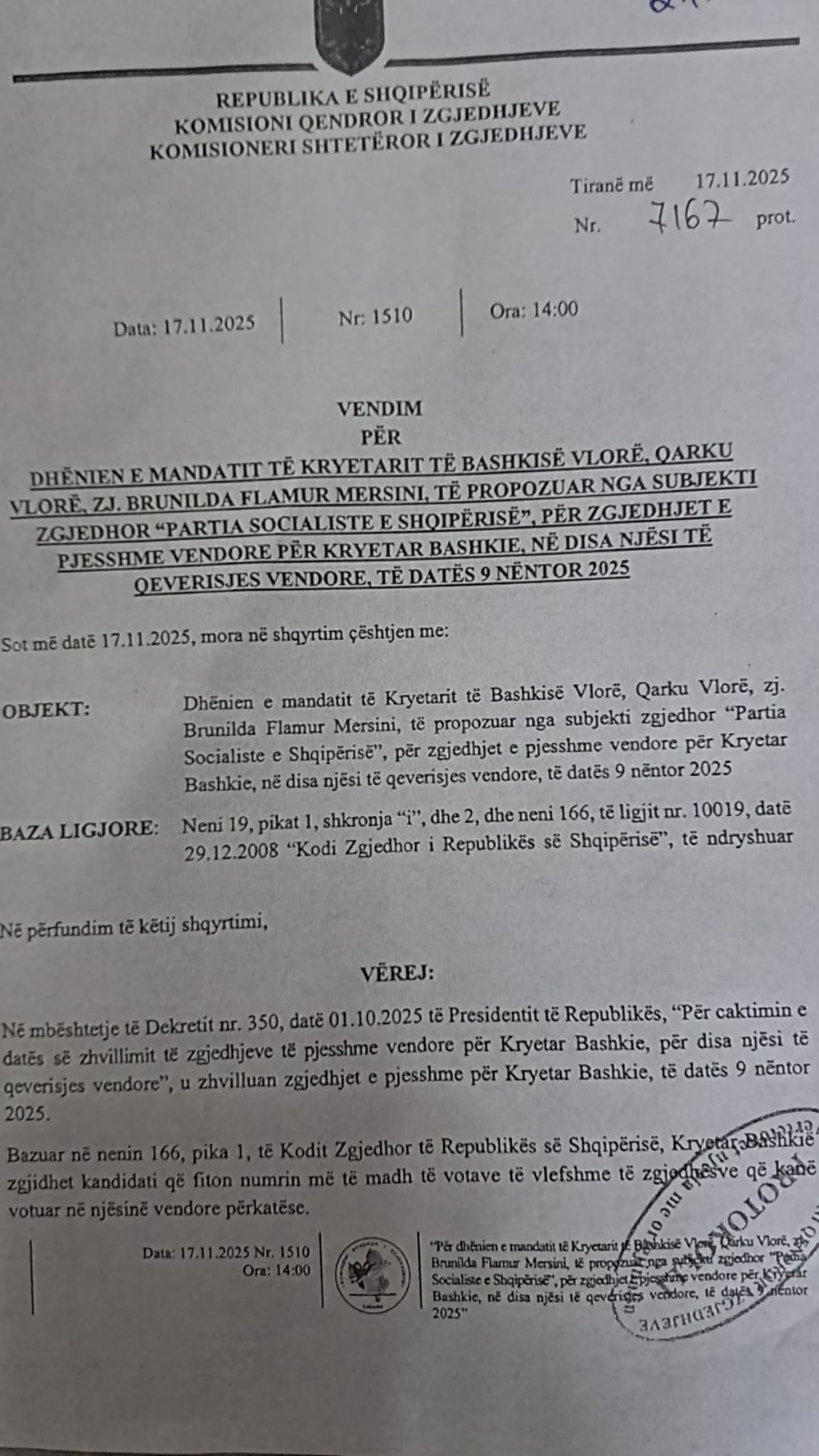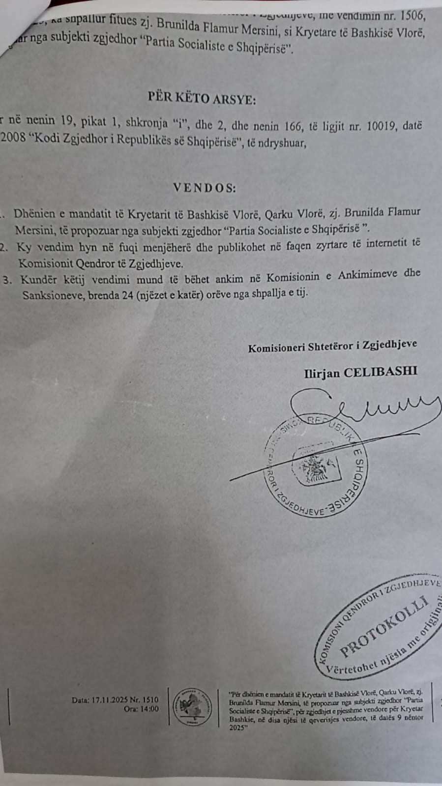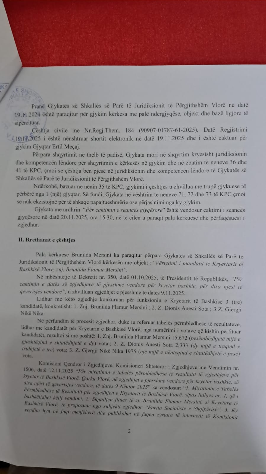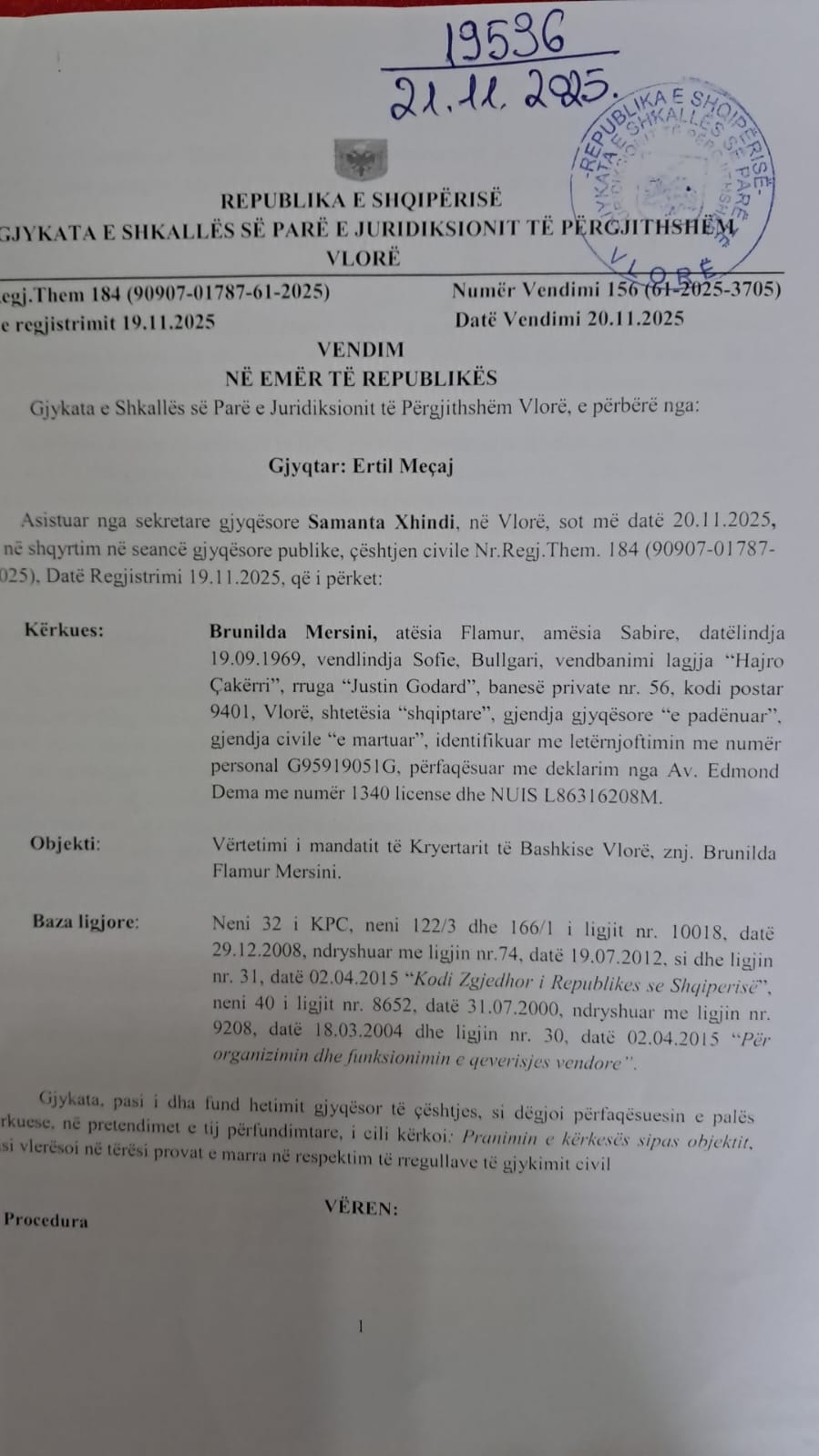 Në ditën e parë të punës, Mersini është pritur me protesta nga qytetarët e Vlorës, të cilët janë mbledhur përpara bashkisë për të protestuar kundër aksionit të Inspektoriatit të Mbrojtjes së Territorit, për lirimin e hapsirave publike.