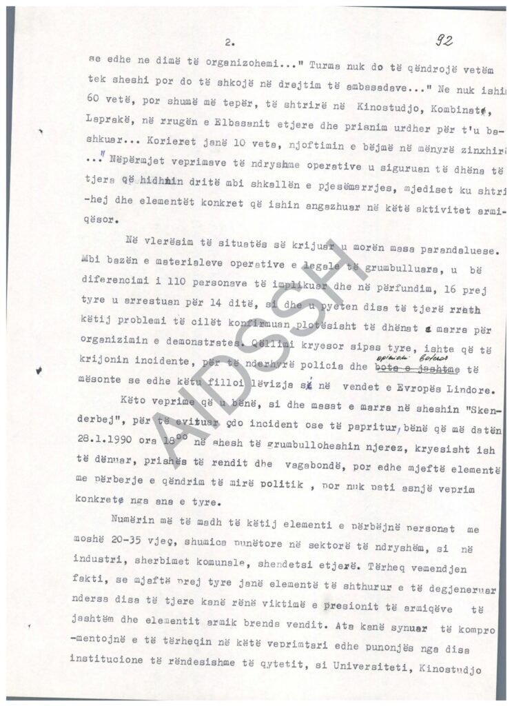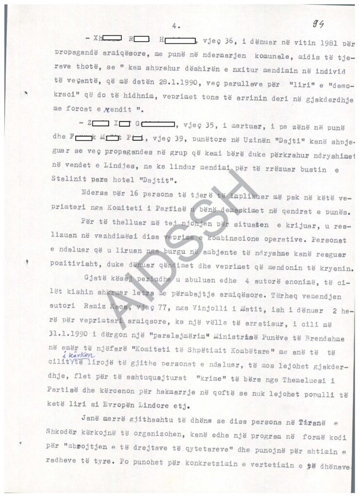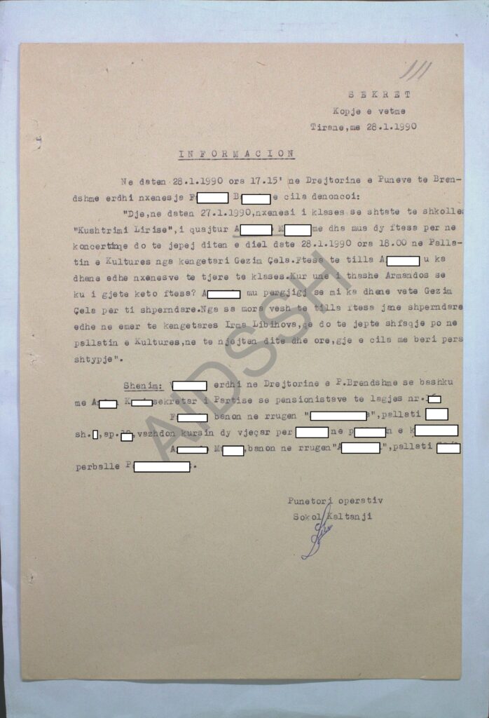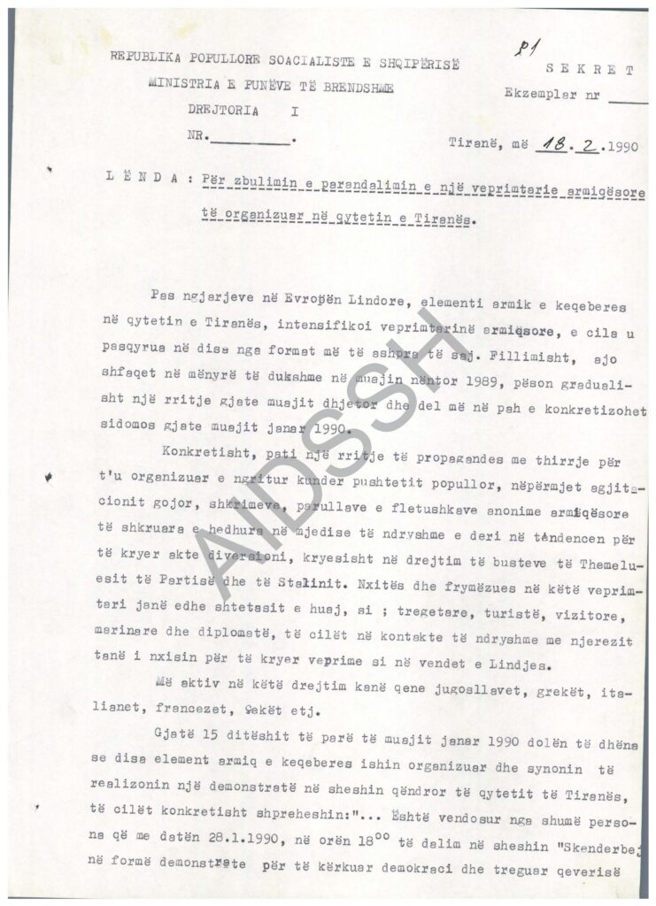 Nga dokumentet arkivore të ish-Sigurimit të Shtetit, pjesë e një dosjes agjenturiale me kodin “Pseudodemokrati”, paraqitet transkriptimi i raporteve operative që pasqyrojnë mënyrën e monitorimit dhe administrimit të kësaj ngjarjeje.