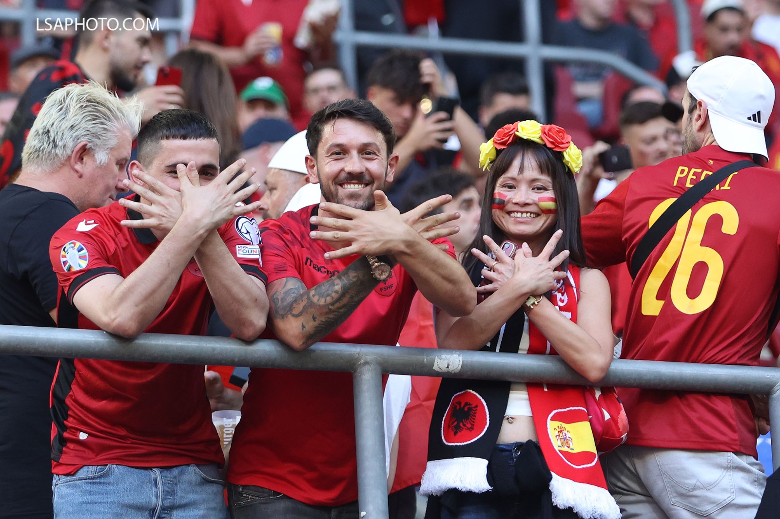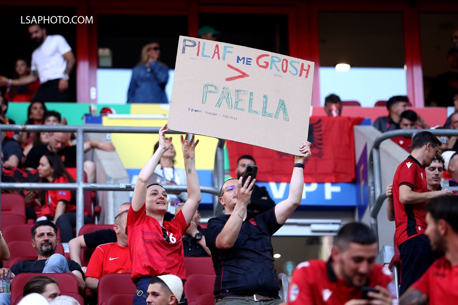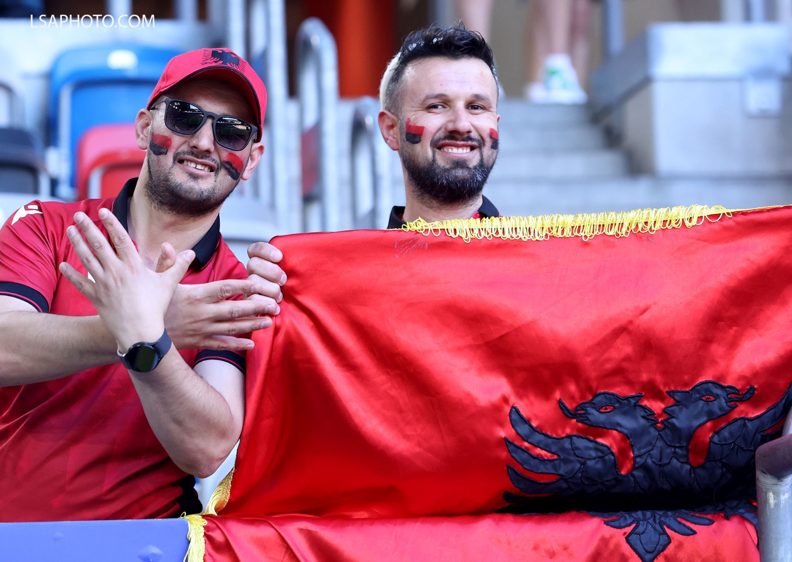 Tifozët kuqezi kanë mbushur stadiumin me flamuj, bluza, qeleshe.
