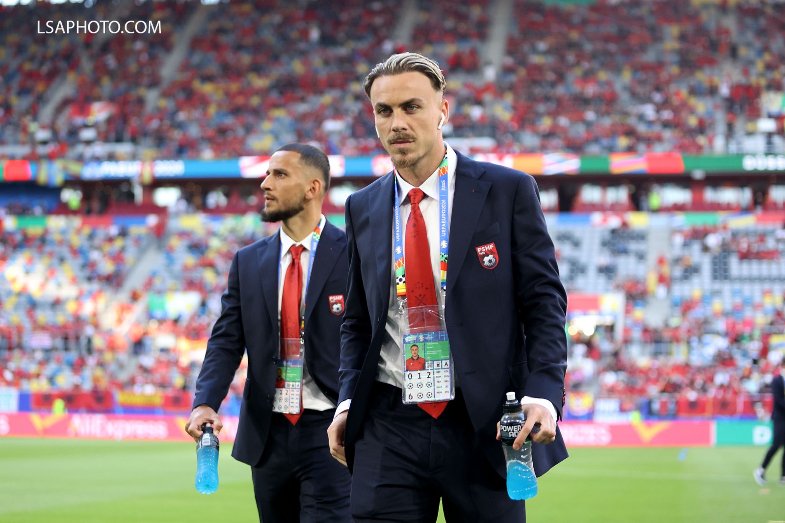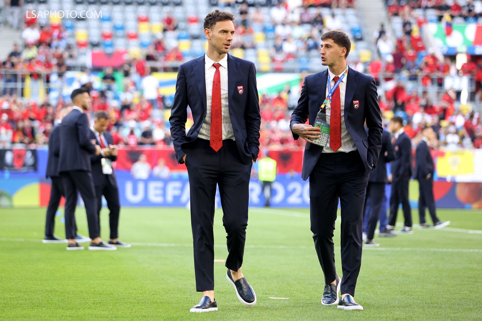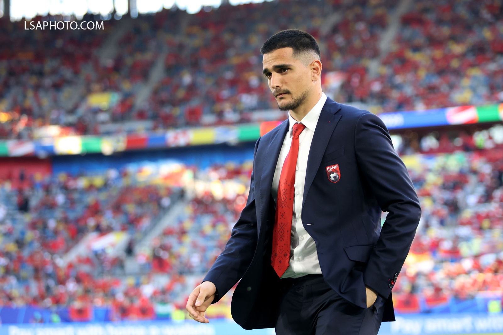 Tifozët kuqezi kanë mbushur stadiumin me flamuj, bluza, qeleshe.
