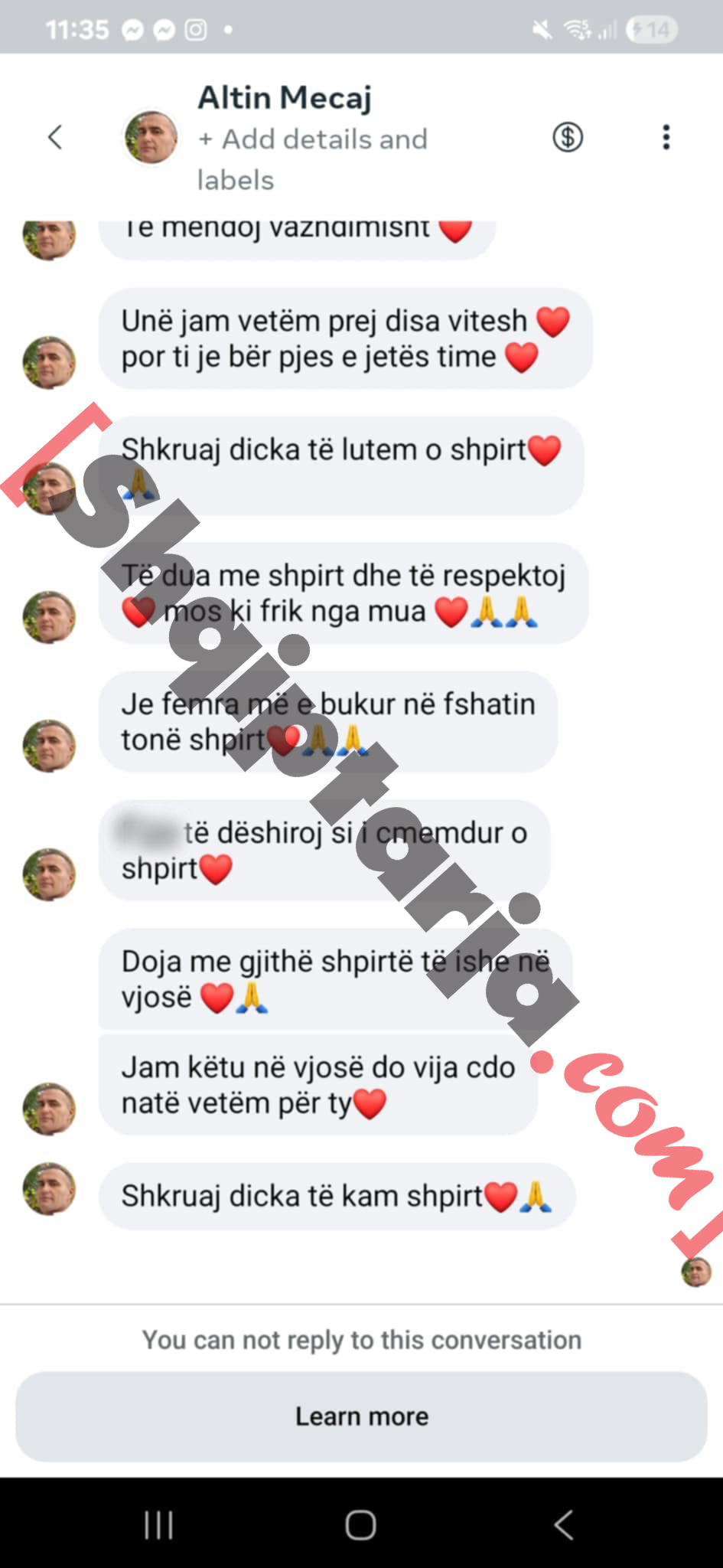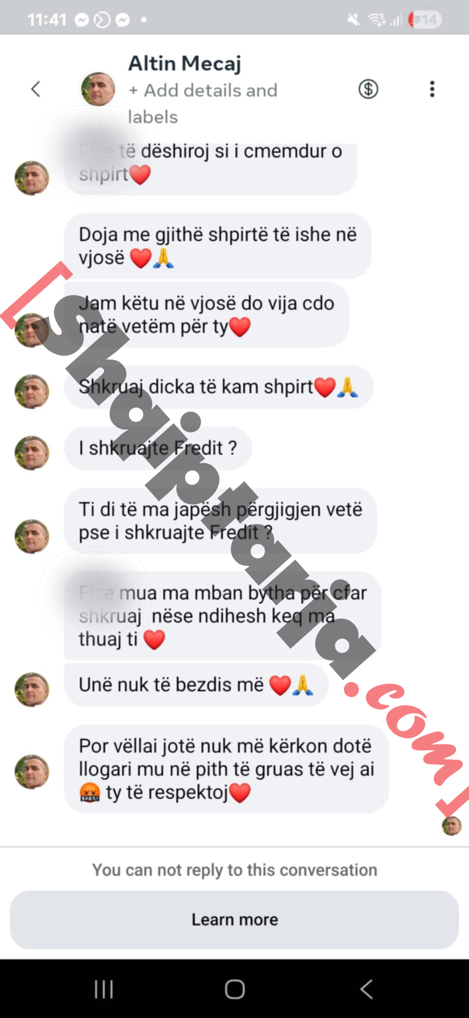 Altin Meçaj u dhunua brutalisht në pragun e shtëpisë. Ai thotë se e rrahu Fredi Lamaj për një koment që i kishte bërë të motrës. Kjo e fundit ka reaguar duke nxjerrë mesazhet dhe shihet që nuk bëhet fjalë vetëm për një kompliment. Ajo thotë se i vëllai nuk e ka dhunuar 45-vjeçarin.