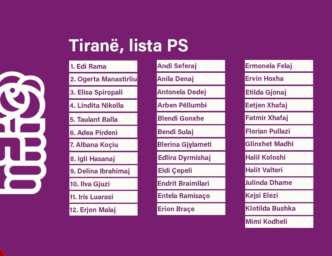 Vetë kryesocialsiti Rama do të jetë në listën e mbyllur në qarkun Tiranë. Braçe e Majko në listë të hapur në Tiranë, apo Mimi Kodheli Olta Xhaçka, Anila Denaj. 12 drejtuesit e qarqeve që kanë vend të sigurt në listën e mbyllur, prezantuan para mediave emrat e kandidatëve për secilin qark.
