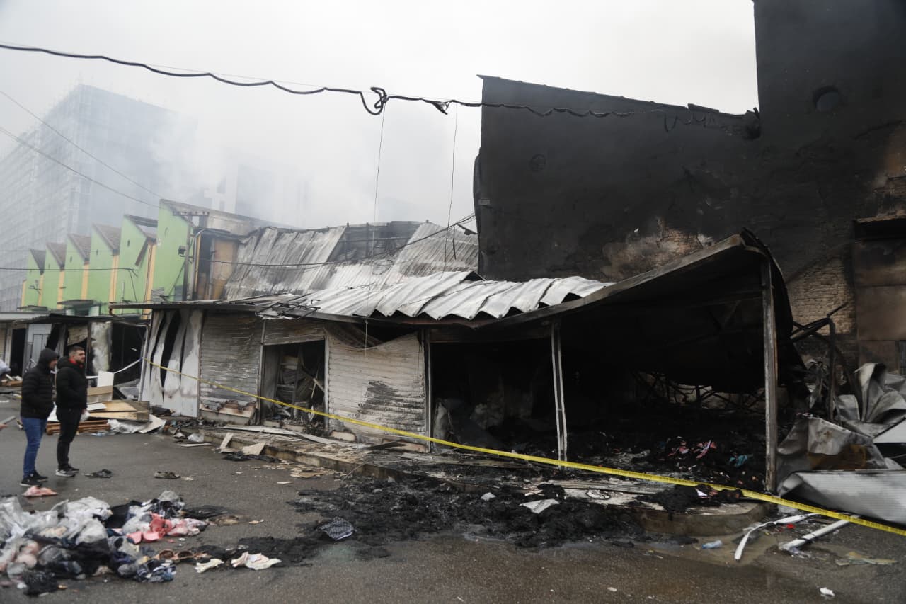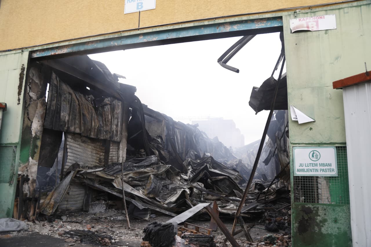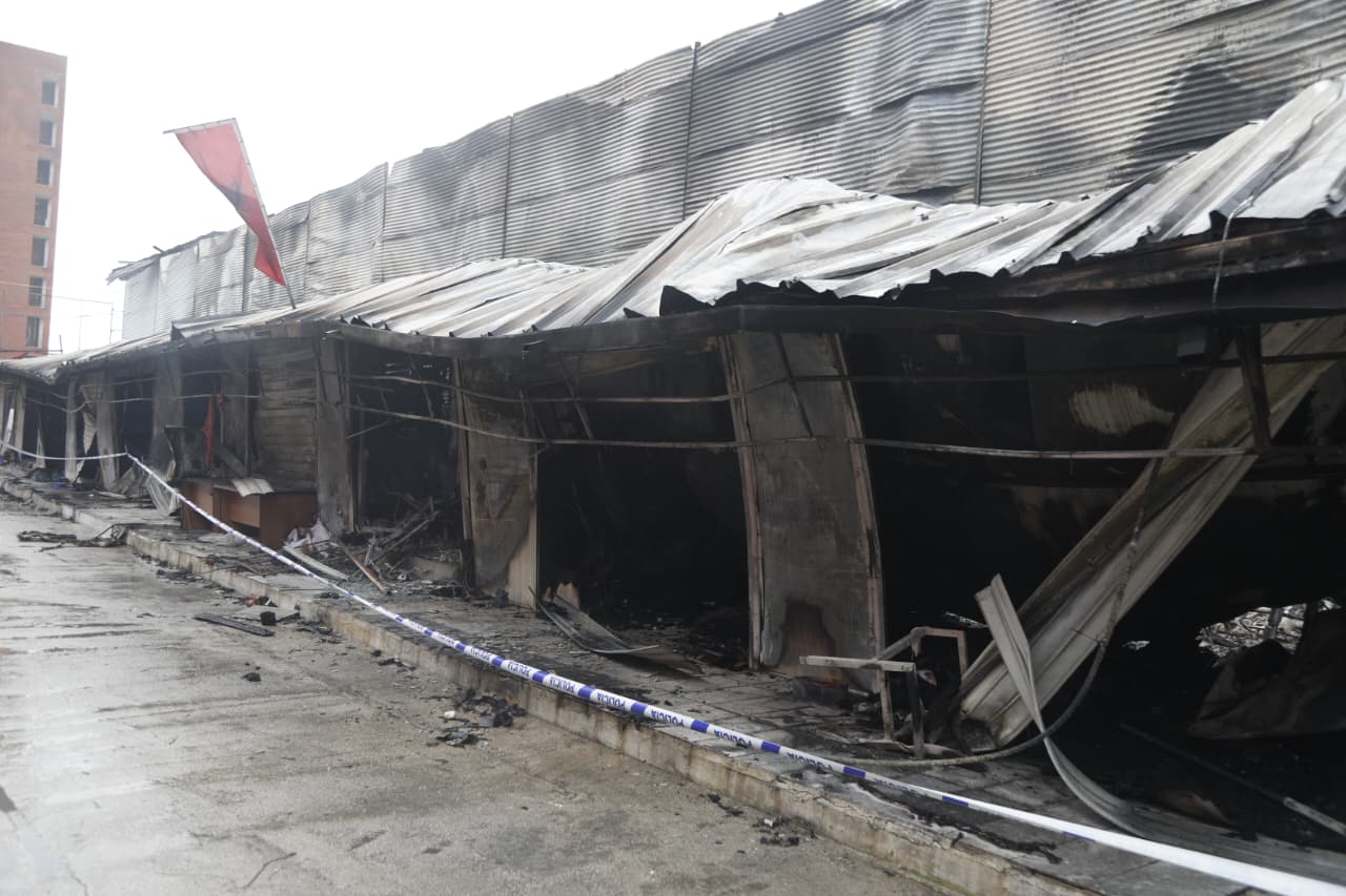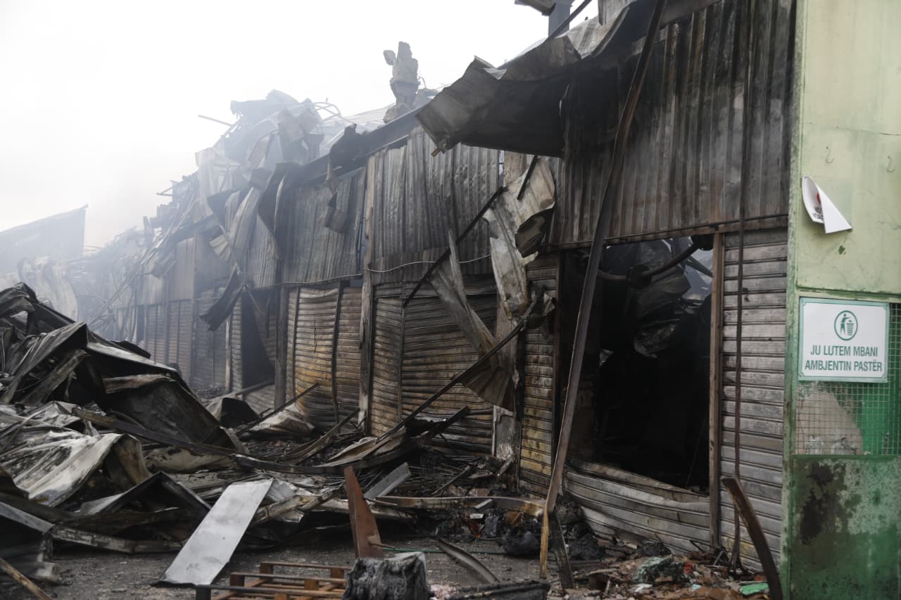 Ajo çfarë ka mbetur janë vetëm rrënojat dhe tregu i rrobave është kthyer në shkrumb e hi.