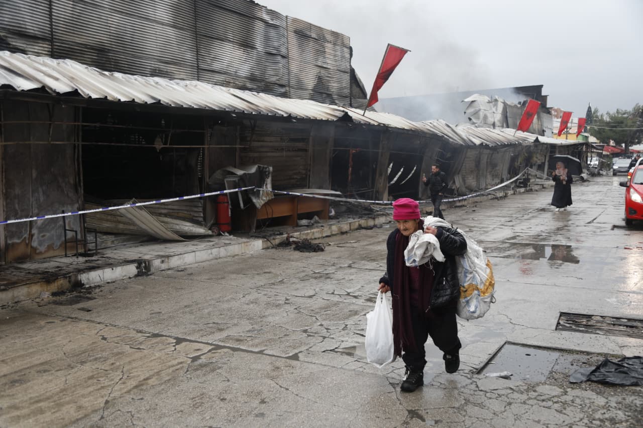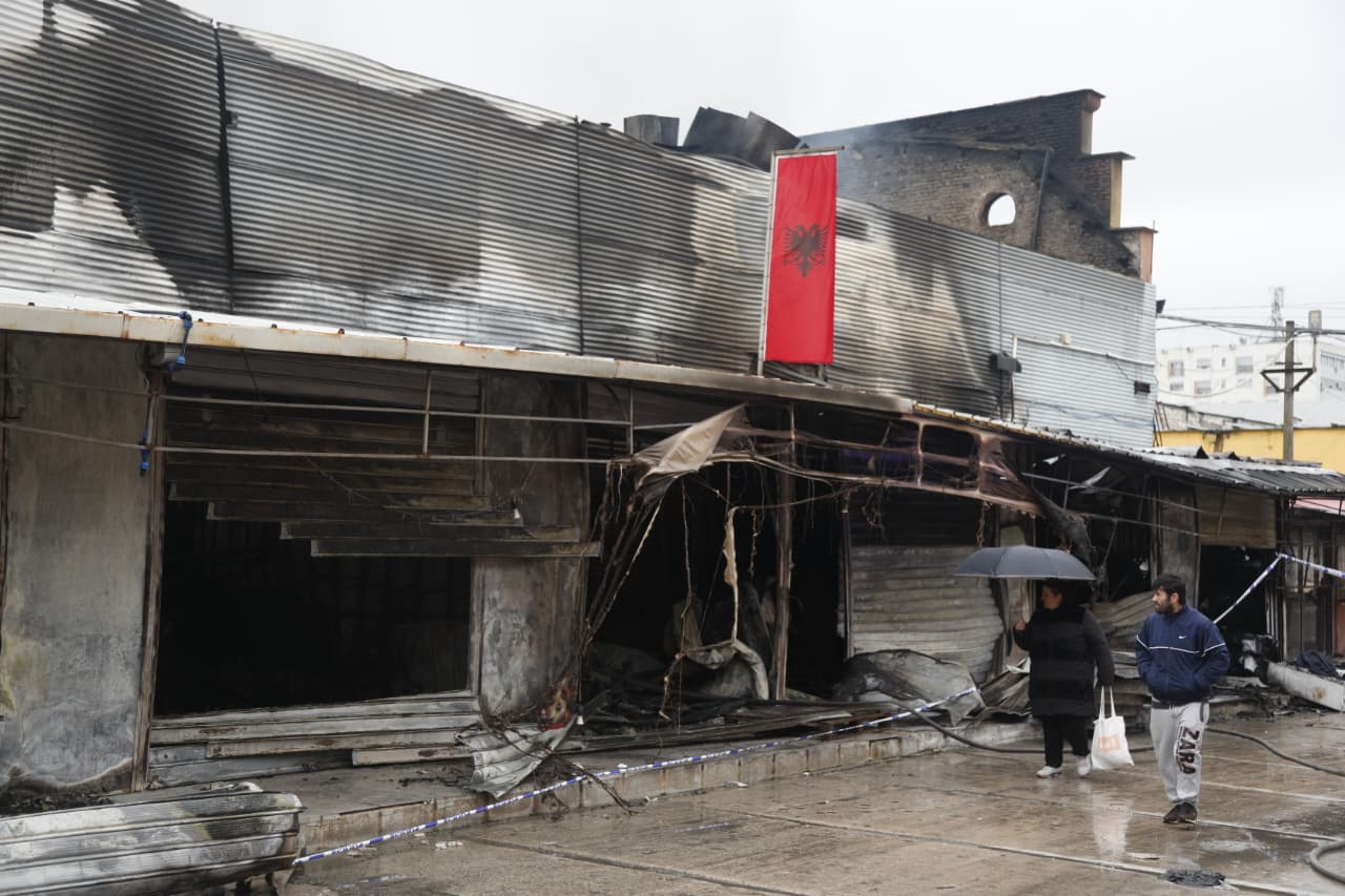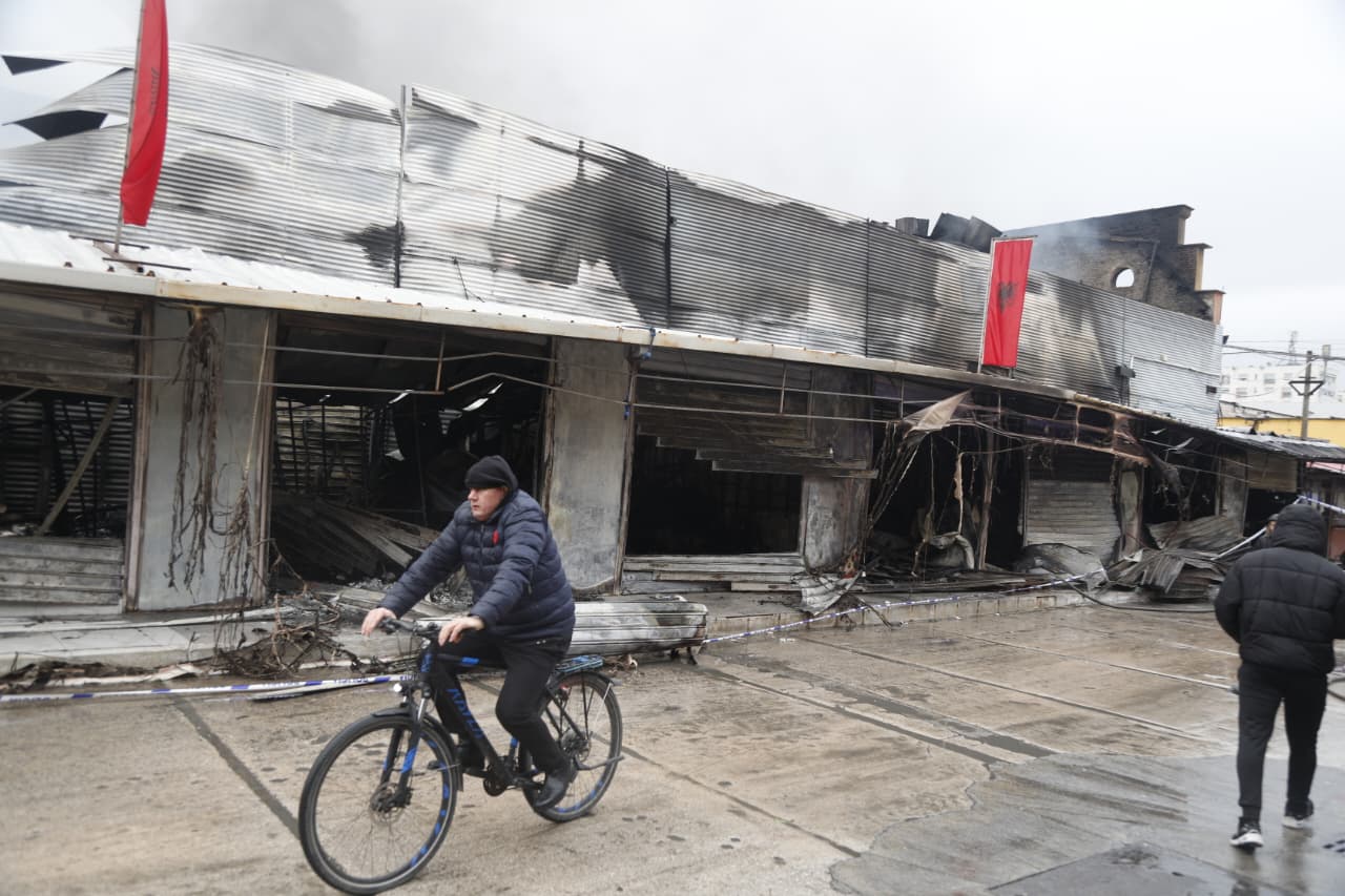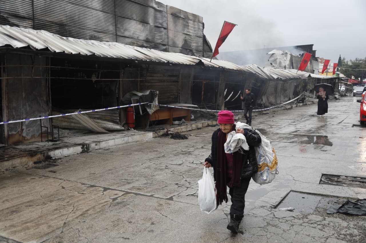 Ajo çfarë ka mbetur janë vetëm rrënojat dhe tregu i rrobave është kthyer në shkrumb e hi.