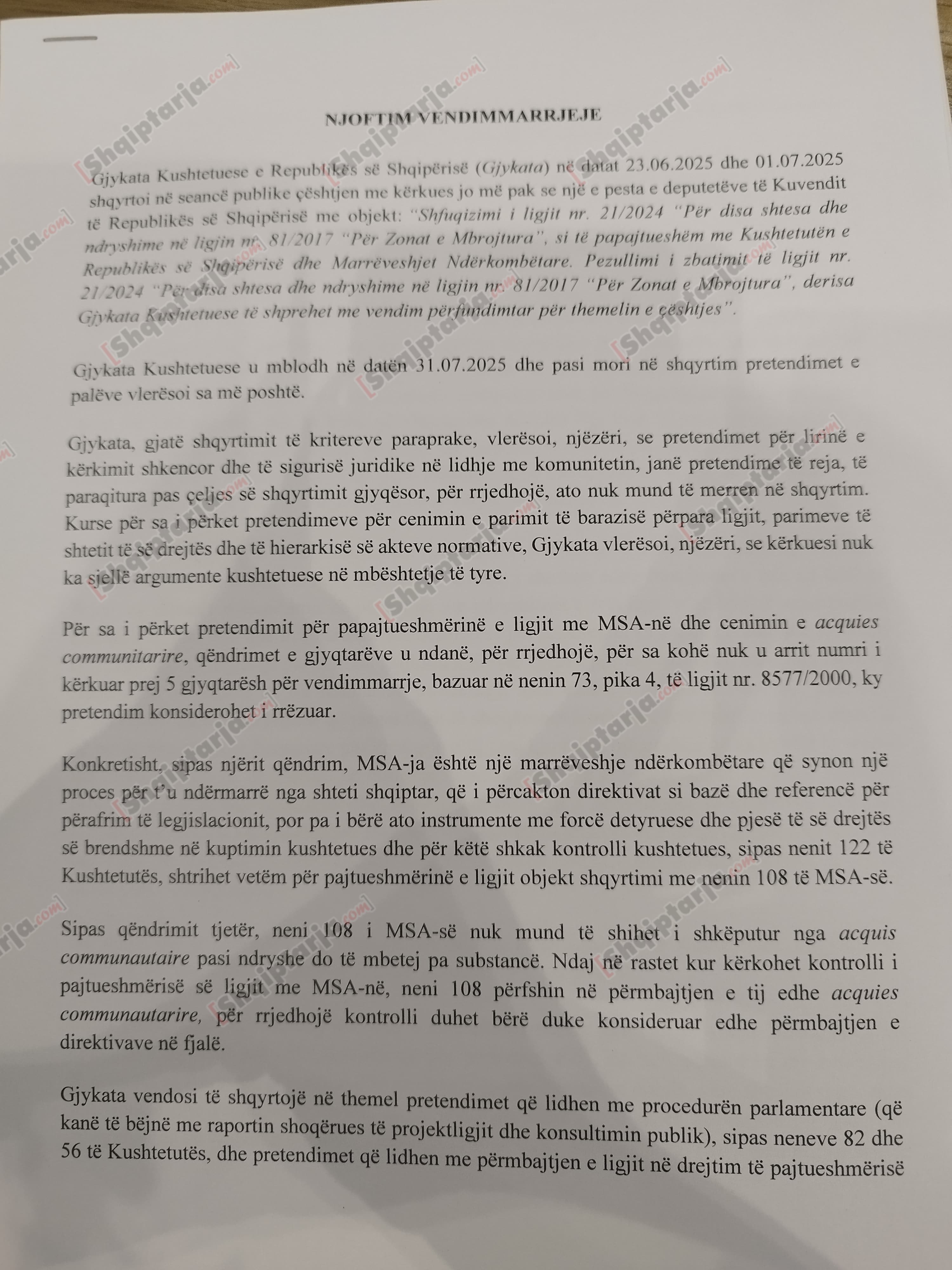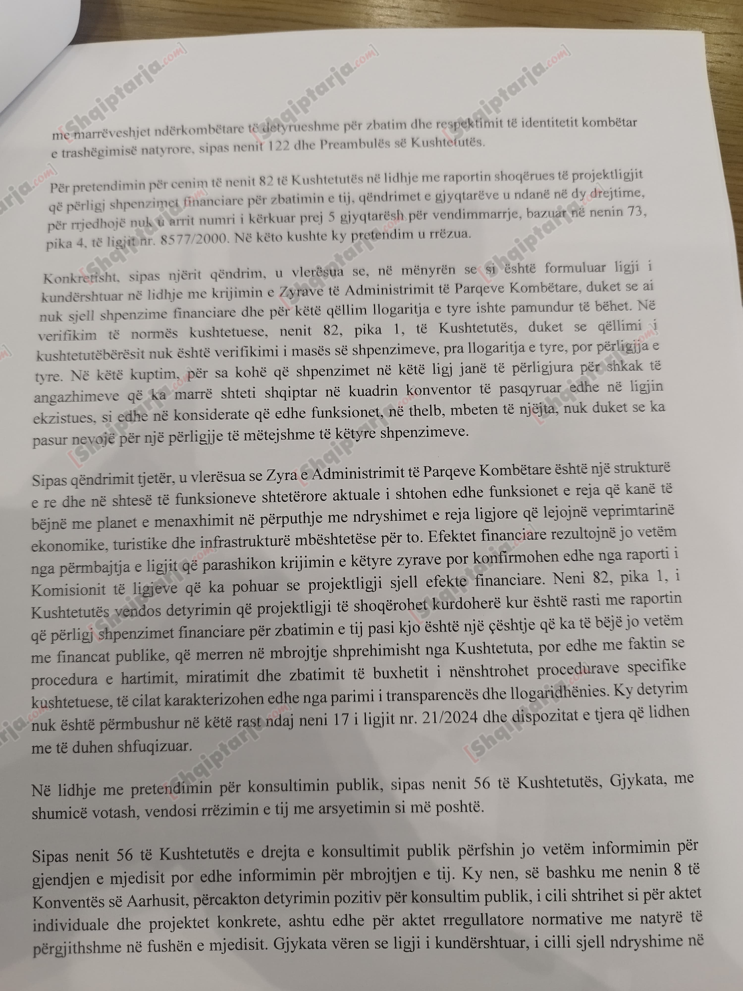 Gjykata Kushtetuese rrëzon kërkesën e PD për shfuqizimin e ligjit për zonat e mbrojtura