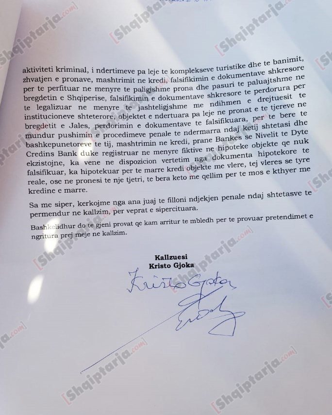 Jemi në urdhra të paligjshëm. Jemi në një firmë të kryeministrit që ka guxuar Alban Xhillari dhe ja ka çuar për firmë për zhvillim. Dhe për çudi marrin edhe investitor strategjik. Pra këtu nuk kemi të bëjmë me një individ të zakonshëm. Shpresoj që dosja të filloje këtu dhe për personat që kanë lidhje direkt me pushtetin" tha avokati i Kristo Gjokës. Ndërsa vetë Gjoka theksoi se "Ne kemi më shumë se 30 vjet që kemi pritur për të na u dhënë e drejta për çështjen e pronësisë. Po presim por po na e marrin pronën në derë të shtëpisë. Ka kërcënime rrugës por unë nuk i njoh. Ajo tokë është e familjes time".