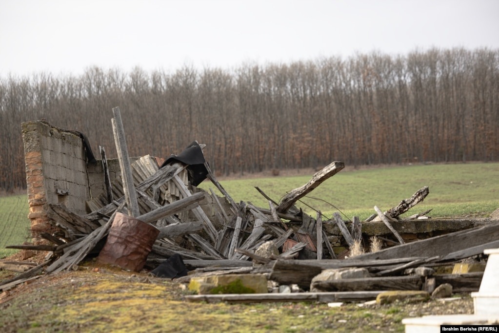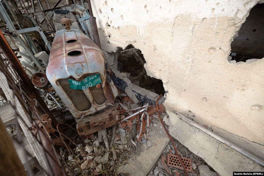 Një traktor i familjes Jashari ka mbetur në mes të njërës nga shtëpive ku ata u vranë dhe skelave mbrojtëse që i janë vendosur shtëpisë pak kohë pas ngjarjes të vitit 1998.