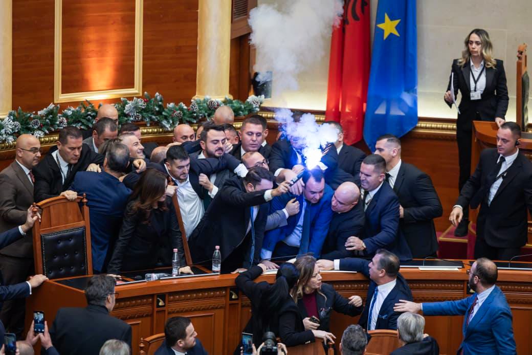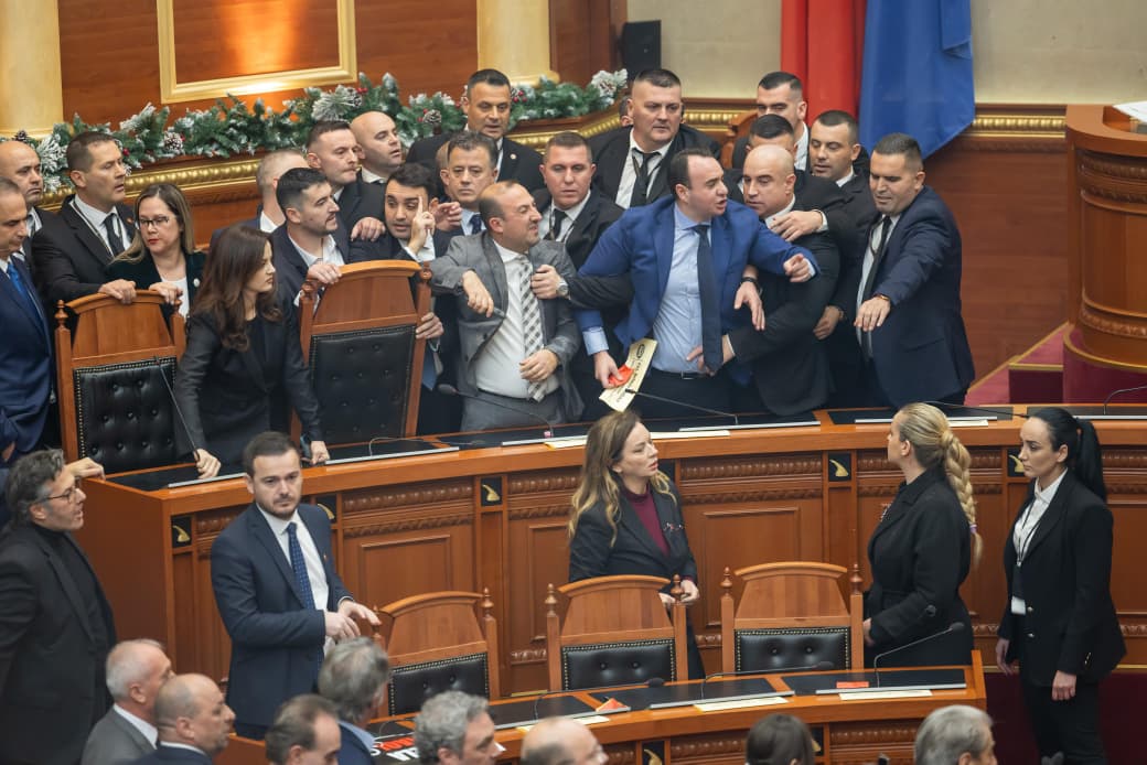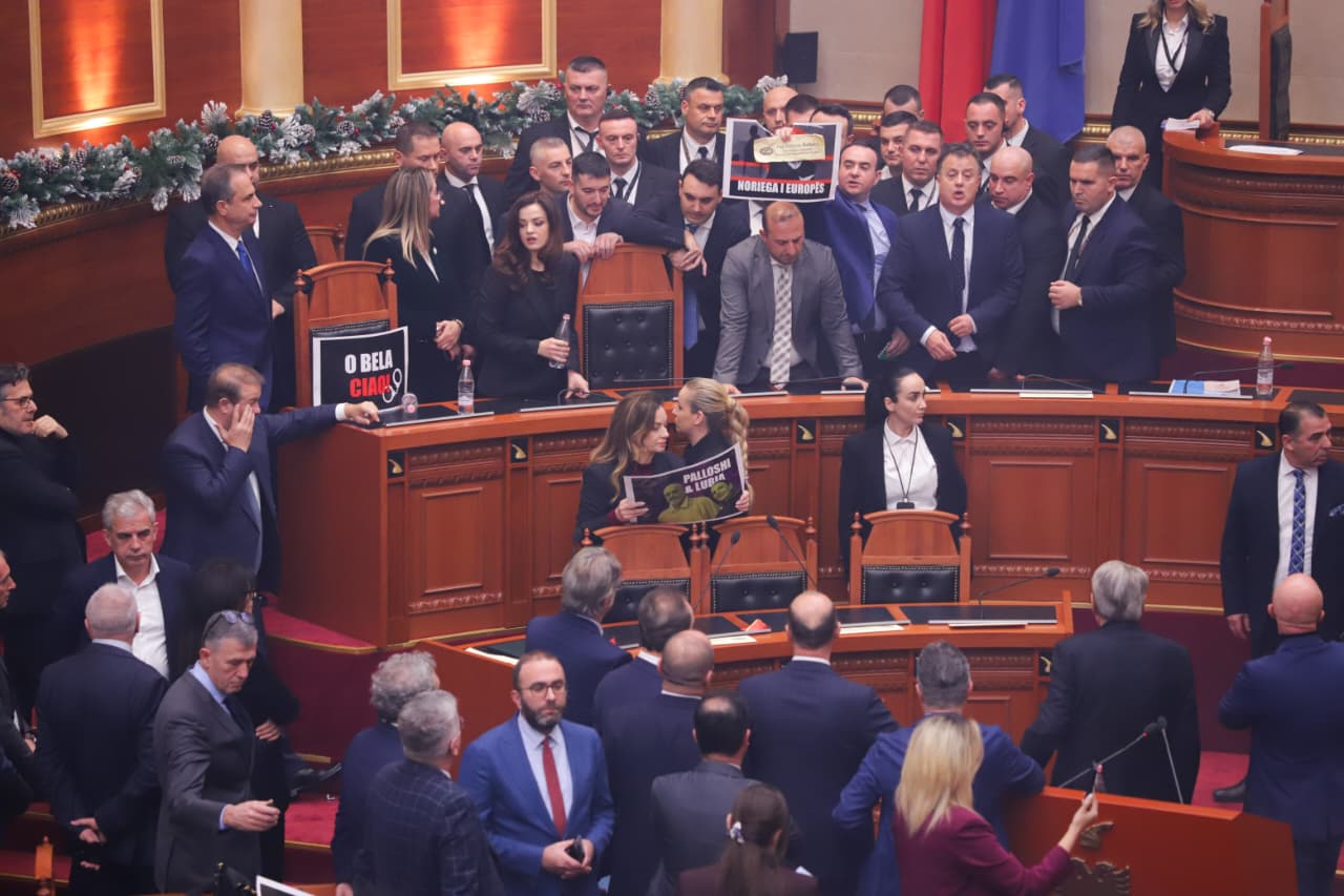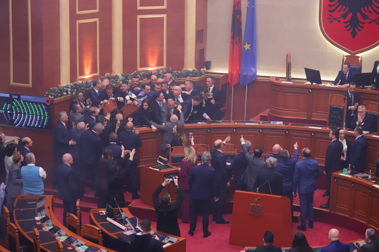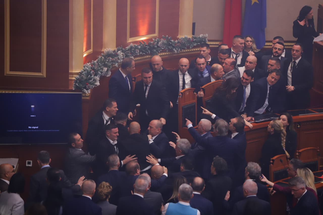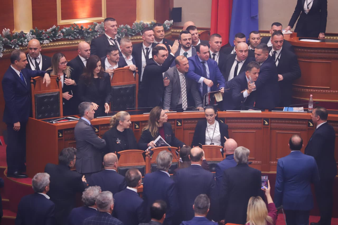 Kuvendi 1 orë 'arenë' përleshjeje, deputetët e PD zaptojnë karriget e ministrave dhe përplasen me Gardën