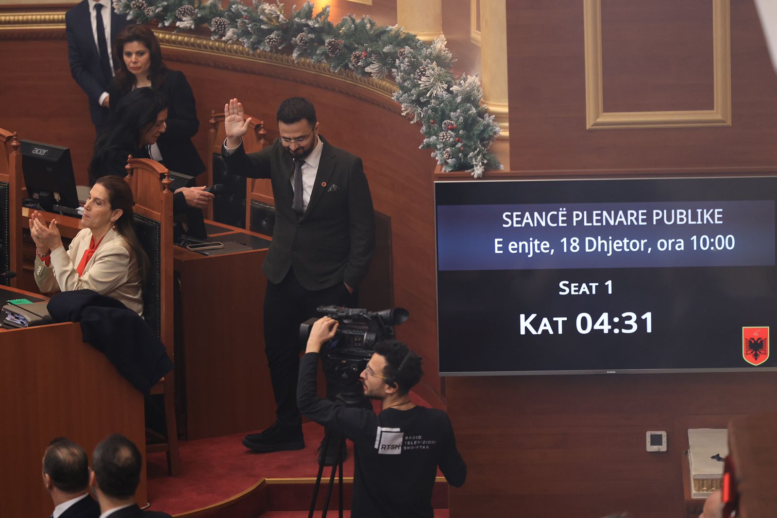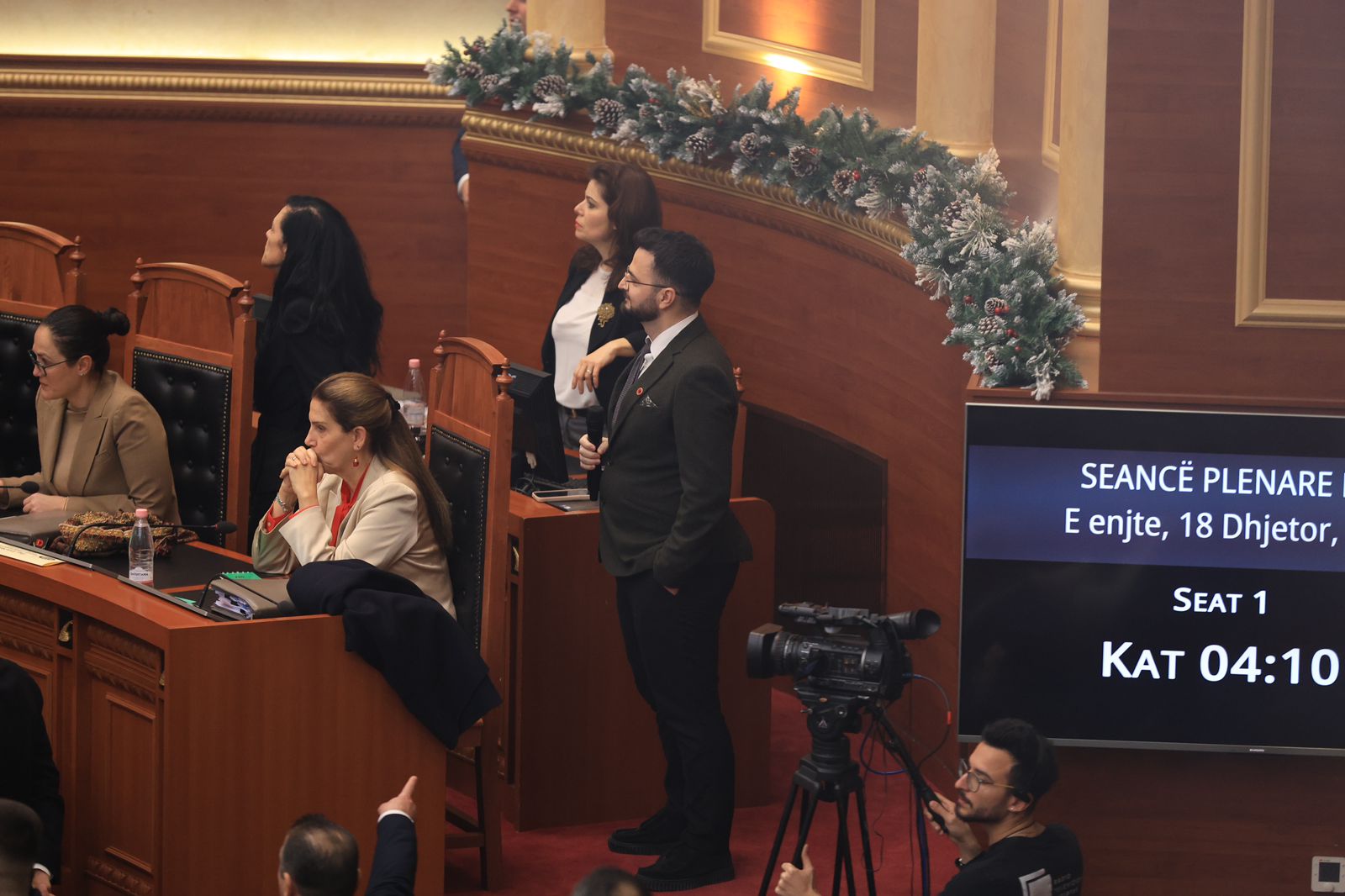 Deputetët demokratë zaptuan karriget e ministrave për të protestuar për tre çështje: Betimin e Shabanit si Avokat Populli, dosja e AKSHI-t dhe çështja e Belinda Ballukut. Flamur Noka e Klevis Balliu u përjashtuan. Belind Këlliçi, Albana Vokshi e Fidel Kreka ndezën flakadanë. Opozitarët hodhën ujë e shihe në drejtim të ministrave dhe Peleshit.