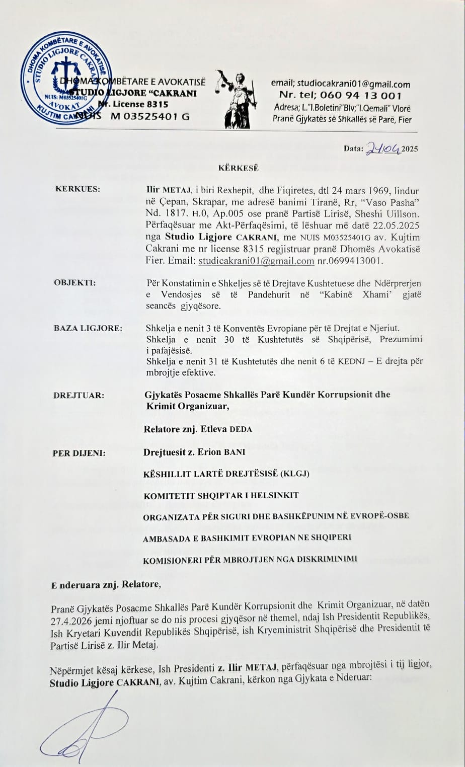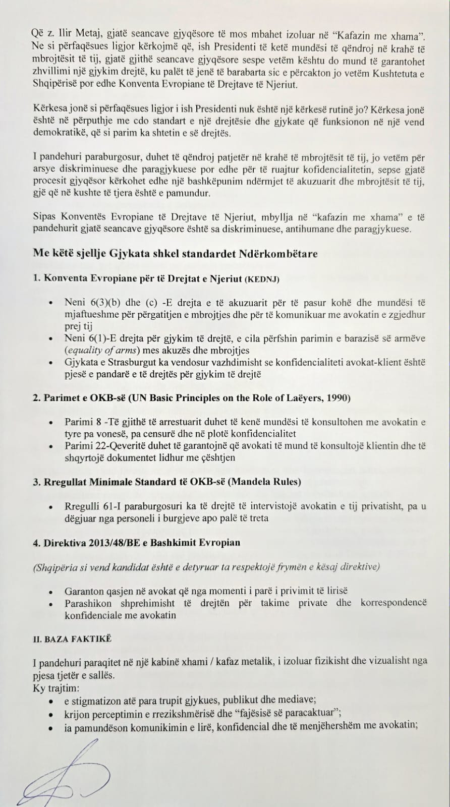 Avokatët e Ilir Metës kanë bërë kërkesë në Gjykatën e Posaçme, që ish-Presidenti të mos qëndrojë në kafazin e xhamit gjatë seancave gjyqësore.