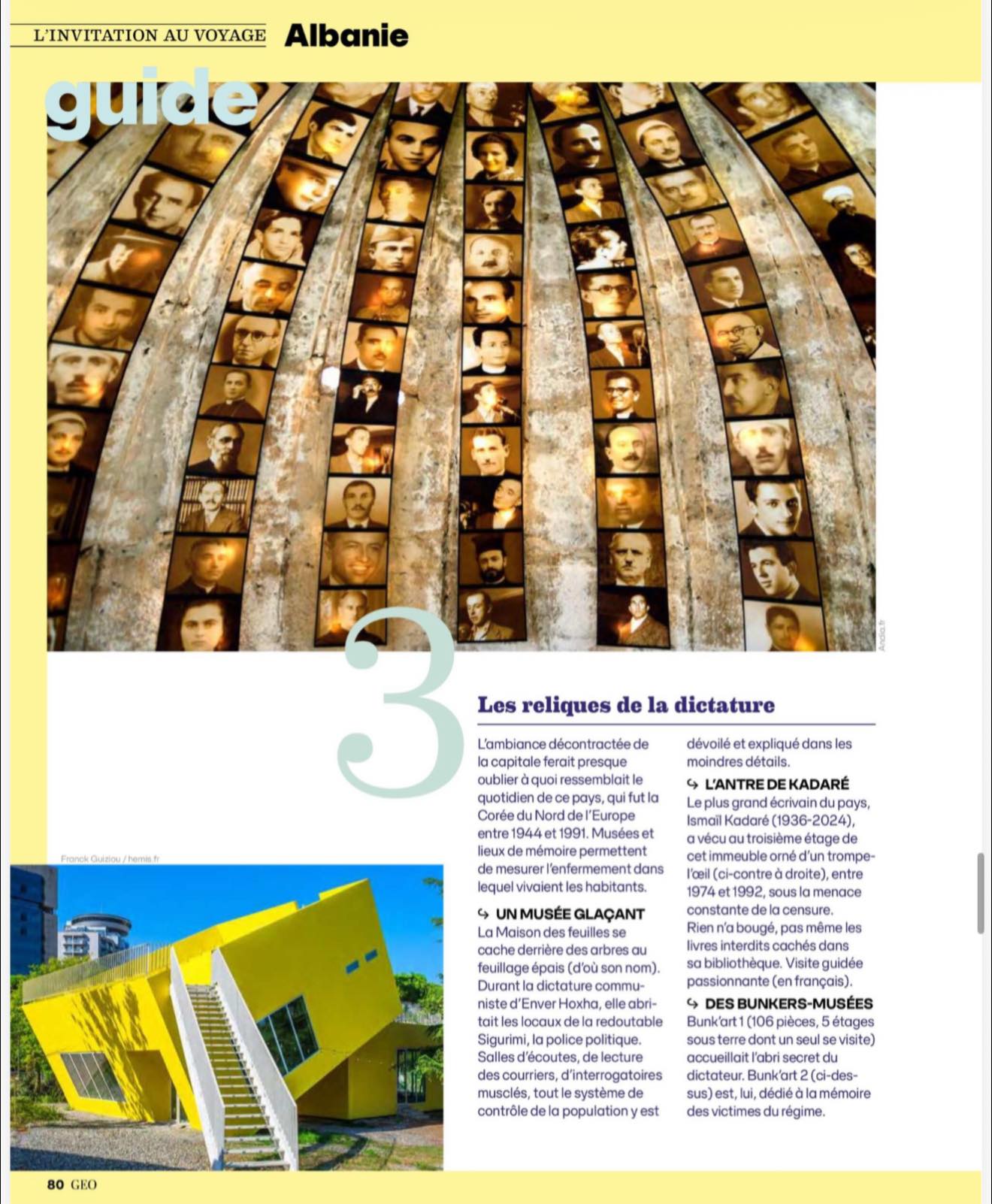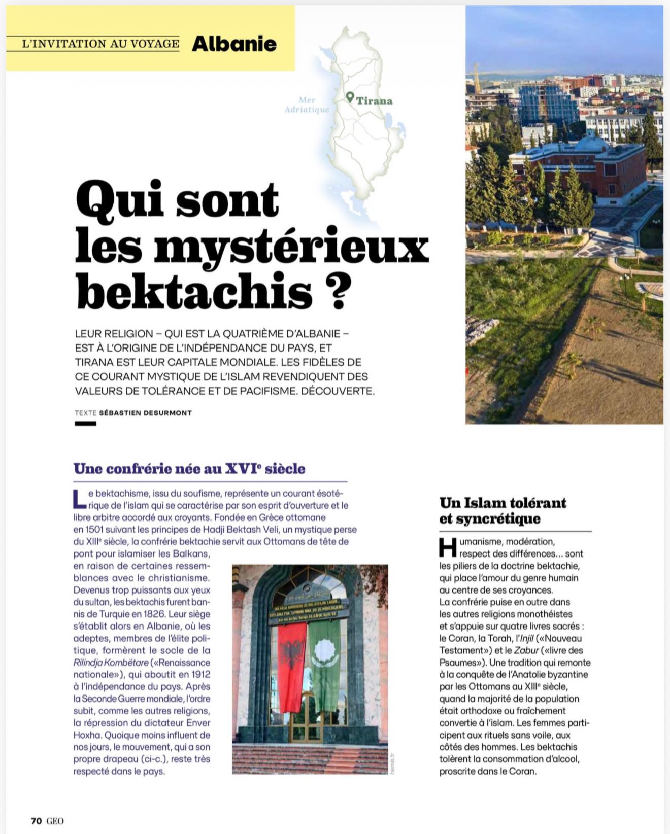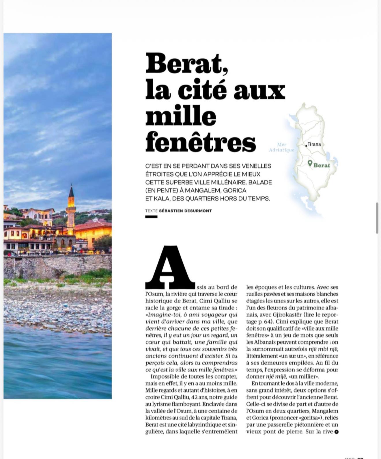 GEO Magazine ka shkruar një artikull për Shqipërinë turistike duke u ndalur në disa qytete e tradita. Në “tokën e shqiponjave”, artikulli shëtit nga metropoli i Tiranës drejt Beratit, Gjirokastrës, rivierës, te Alpet krenare dhe historia e kultura që përbëjnë “perlën e Mesdheut”. Gjithashtu flet edhe për rritjen eksponenciale turistike të viteve të fundit.