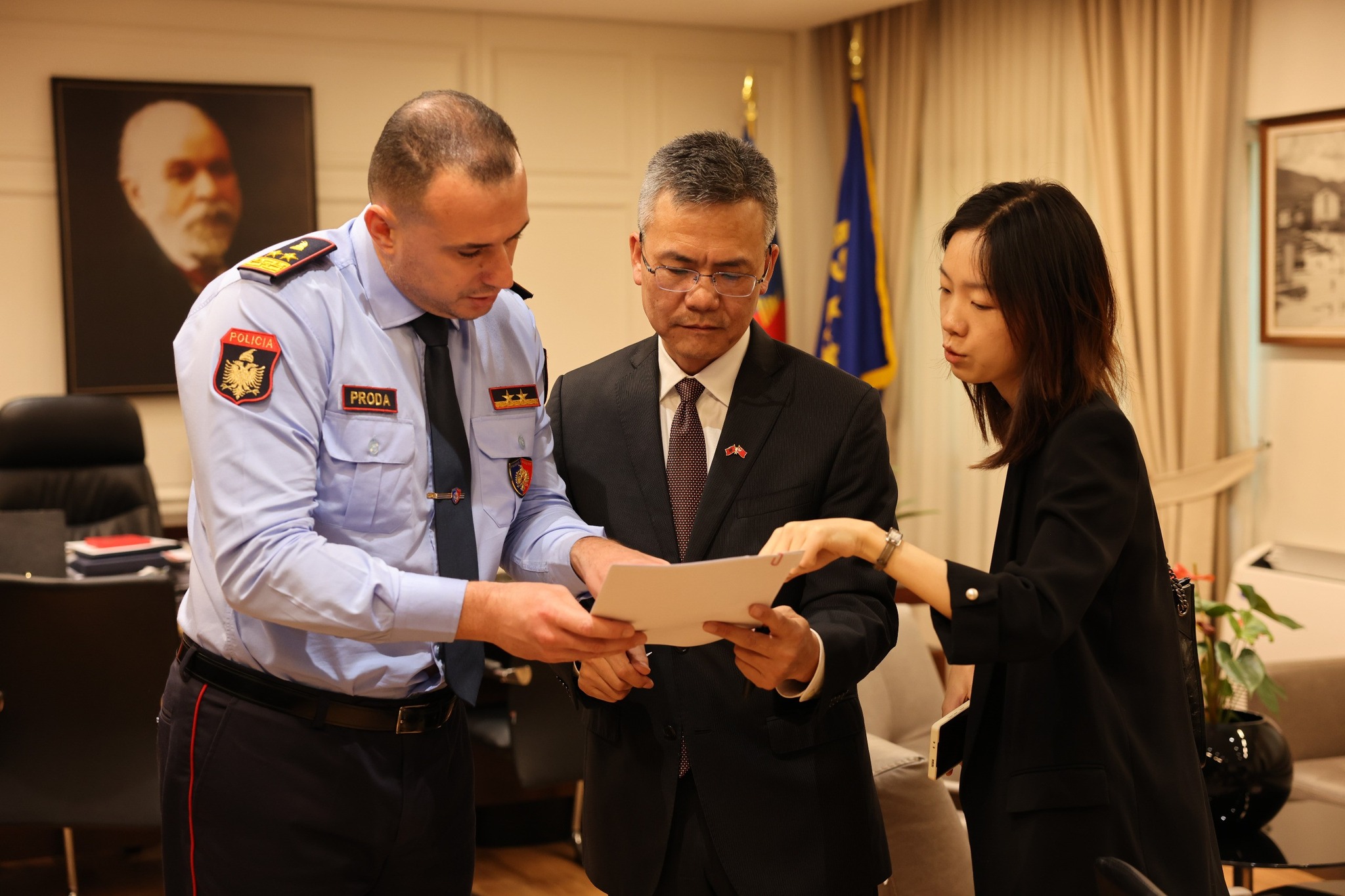 Kryepolici Ilir Proda priti Ministër-Këshilltarin e Ambasadës së Kinës në Shqipëri, Huang Xuehu. U diskutua për operacionet e fundit kundër shfrytëzimit për prostitucion edhe të shtetaseve kineze të rekrutuara për të ushtruar këtë veprimtari në apartamente me qira, në vendin tonë