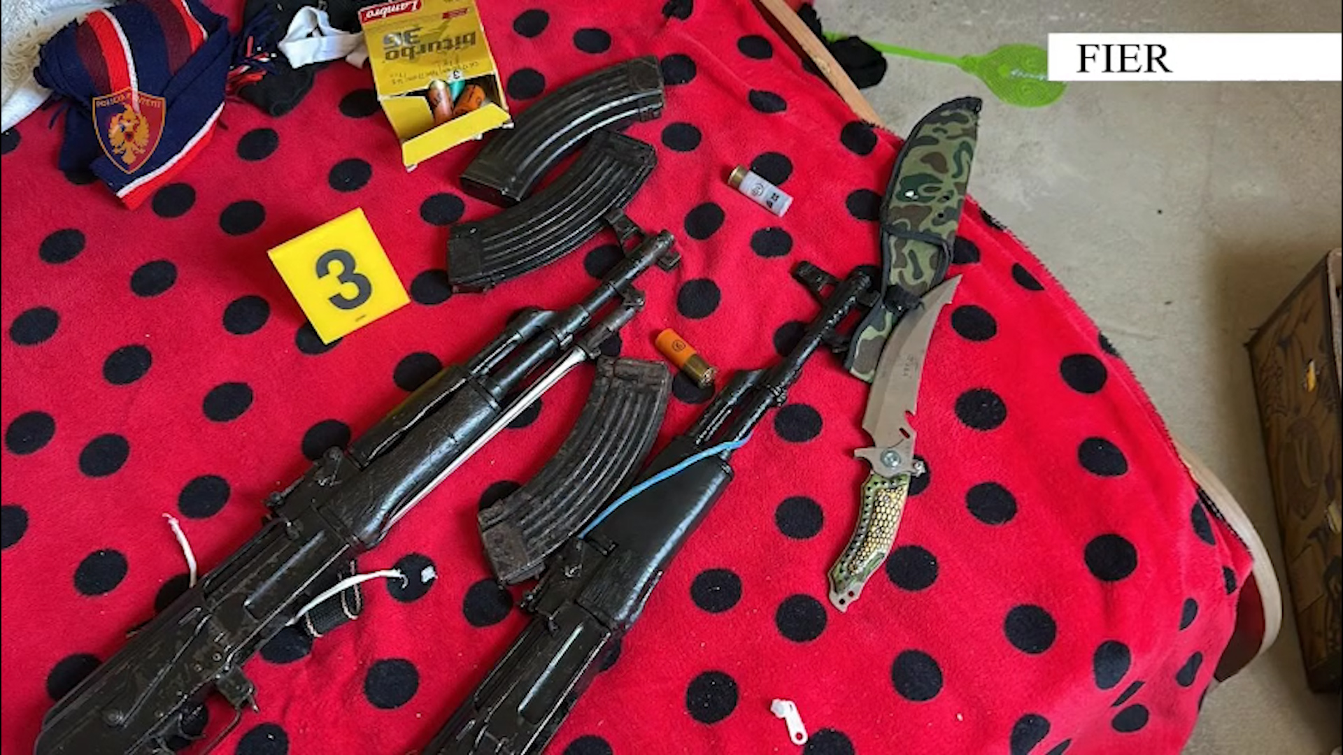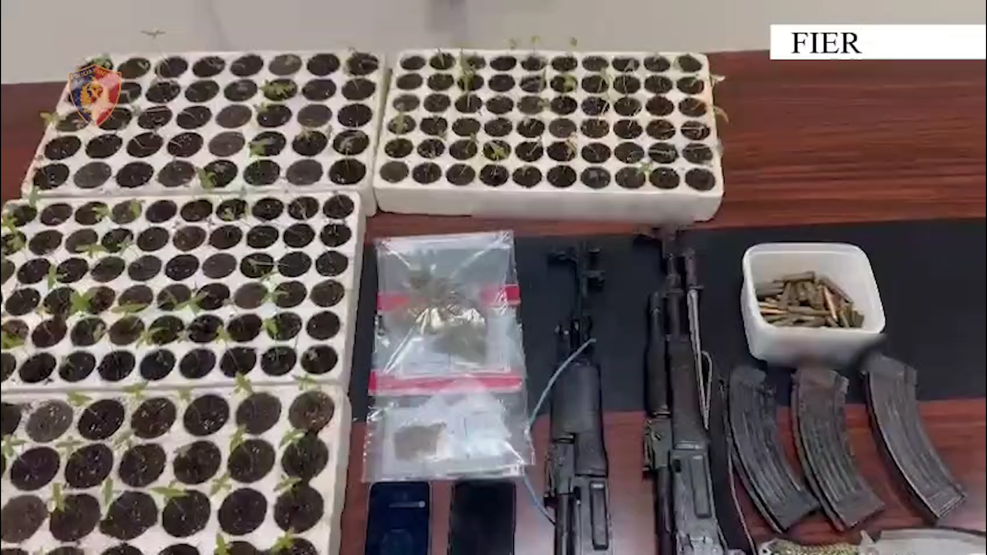 Gjatë kontollit më shtëpinë e Kosta dhe Elton Shabanaj në fshatin Ngjeqar blutë gjetën dhe sekuestruan 2 armë zjarri automatikë, 3 krehra, 1 thikë, doza kanabisi, 200 fara kanabisi dhe 179 fidanë kanabisi të mbjellë në kubikë.