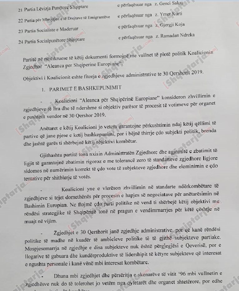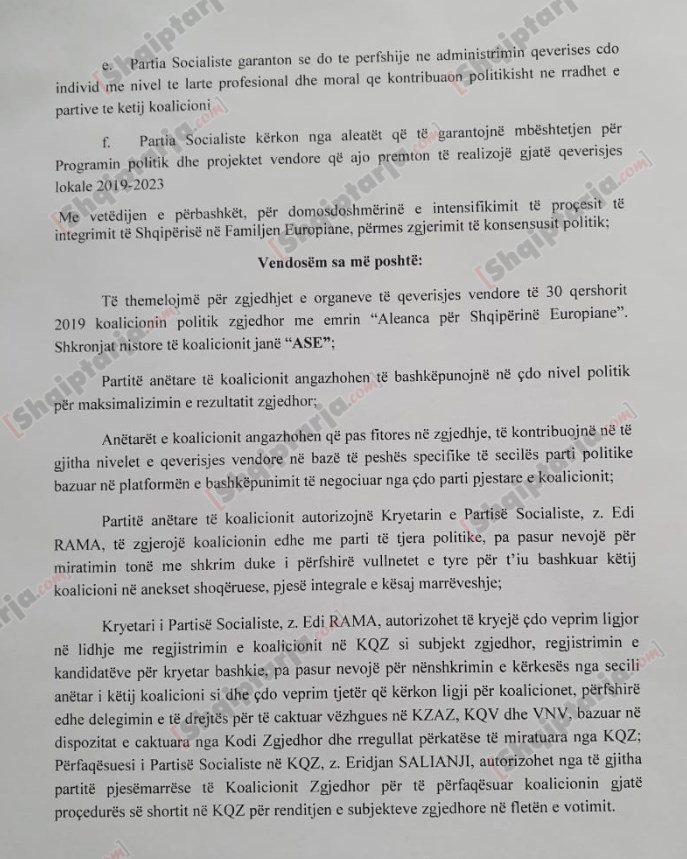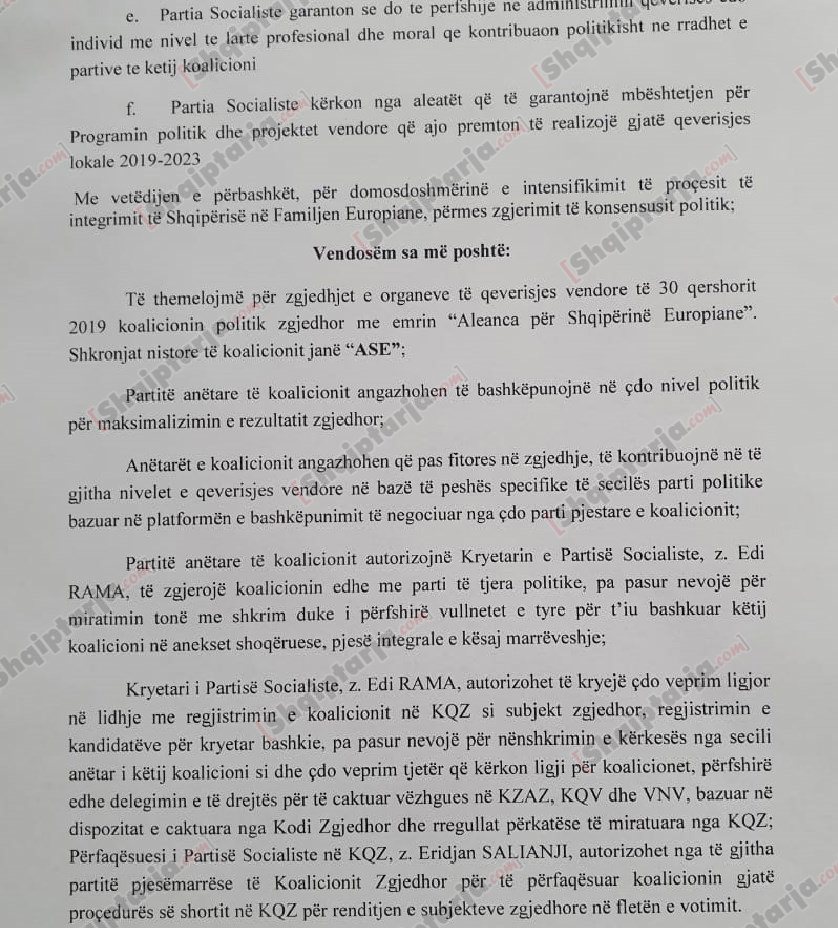 Ajo që bie në sy në këtë marrëveshje është se aleatët autorizojnë kreun e qeverisë Edi Rama që të zgjerojnë koalicionin pa pasur nevojë për miratimin me shkrim të partive aleate, e ndërsa theksohet se qëllimi i saj është maksimalizimi i rezultatit zgjedhor.