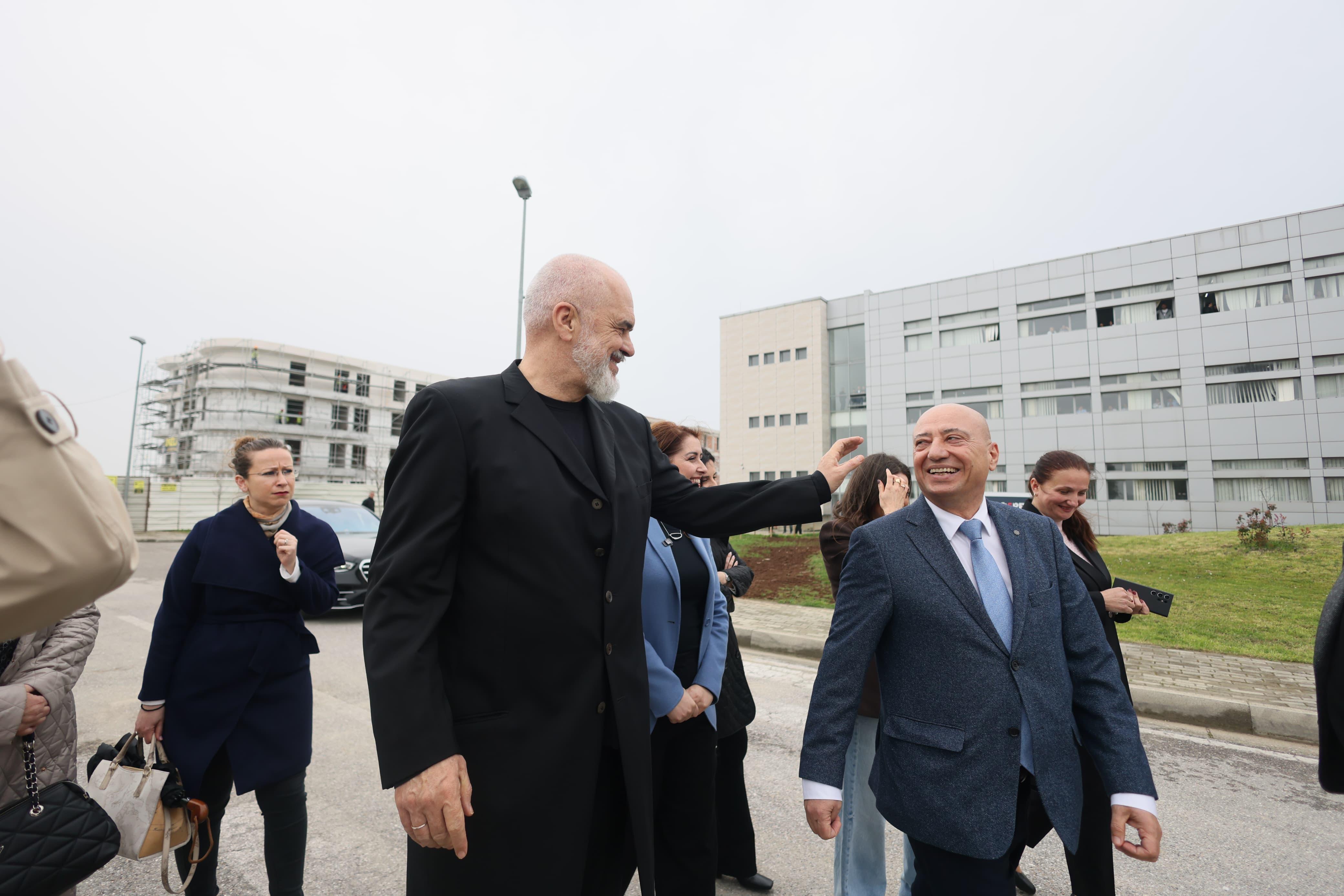 Kryeministri Edi Rama ishte sot në kantierin e Fakultetit të Studimeve Profesionale, që po ndërtohet nga themelet në Universitetin "Aleksandër Moisiu". I shoqëruar edhe nga Ministria e Arsimit Ogerta Manastirliu, Rama u shpreh se studentët që do të akomodohen në këto godina do të paguajnë një qira më modeste.