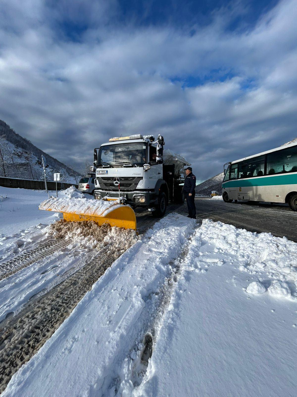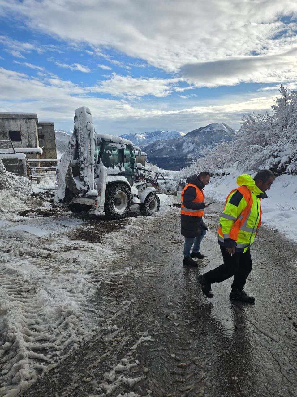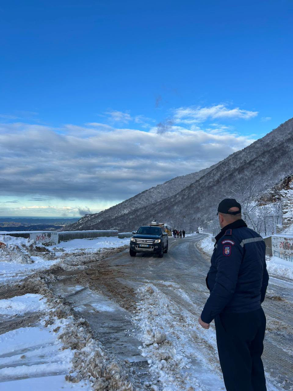 Aksi rrugor Qafë Priskë – Shëngjergj, i cili ishte i mbuluar nga bora, është pastruar dhe është trajtuar me kripë për të mundësuar qarkullimin e automjeteve.