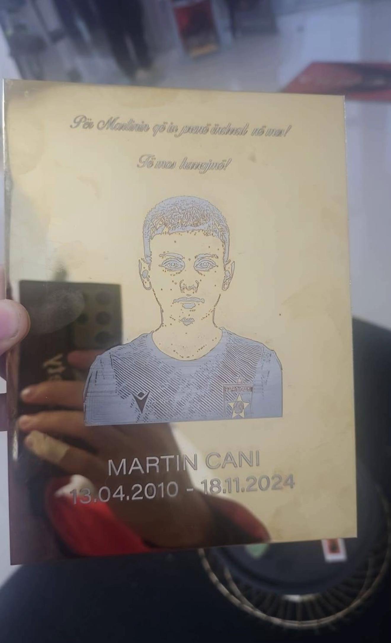 Stoli me pllakë përkujtimore për Martin Canin vendoset pranë fushës sportive