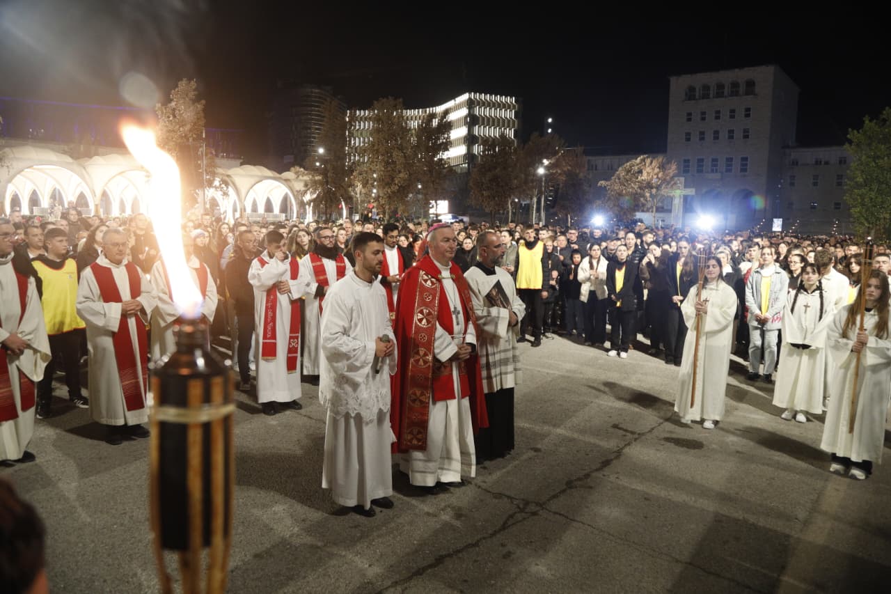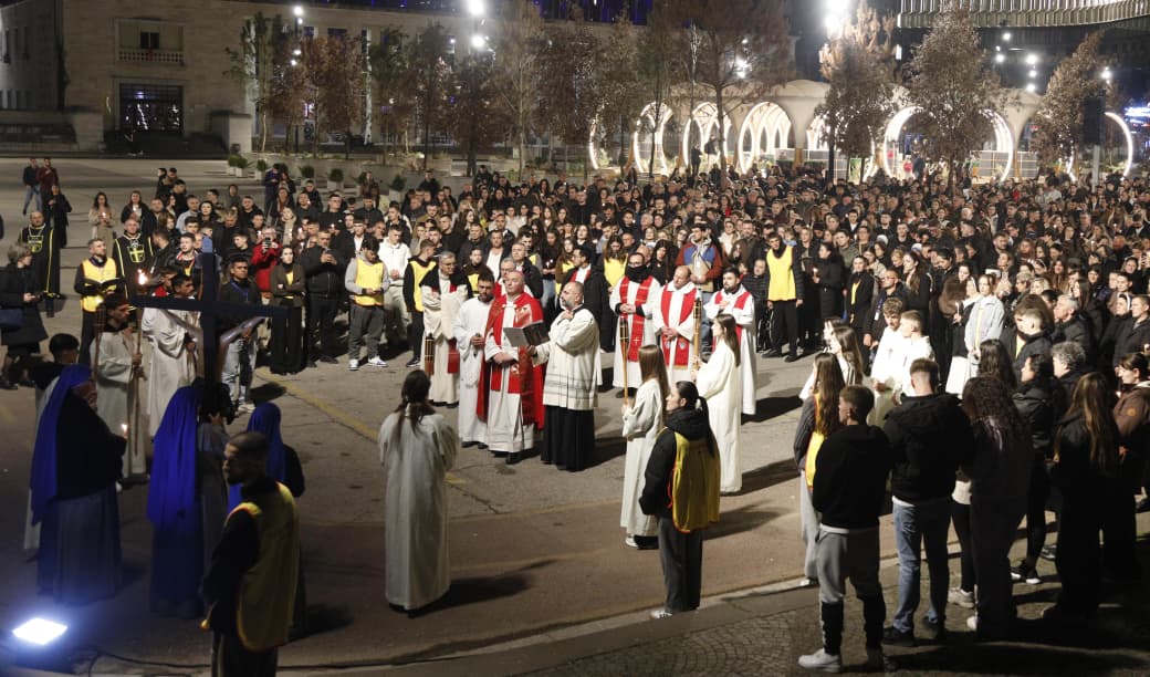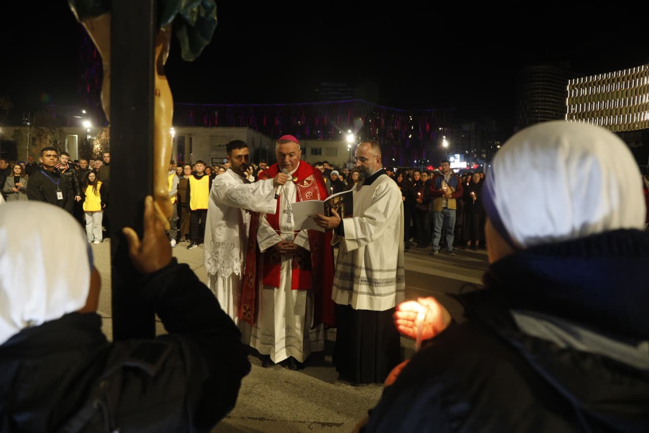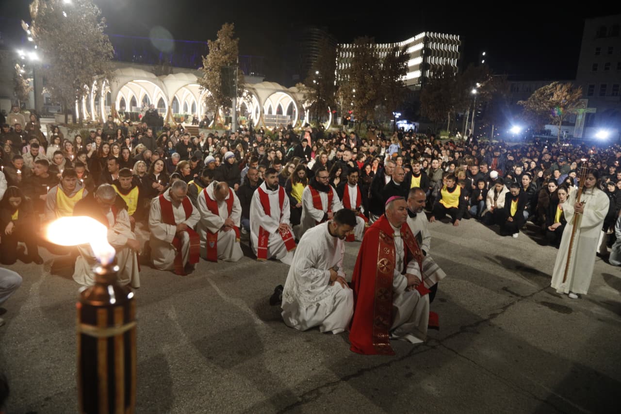 Qindra besimtarë katolikë u mblodhën në sheshin nënë Tereza në Tiranë për të kremtuar një nga ritet tradicionale në prag të Pashkës, Udhën e Kryqit, duke ndjekur 14 ndalesat që përkujtojnë mundimet e Jezu Krishtit drejt kryqëzimit. Imzot Arjan Dodaj foli për rëndësinë e reflektimit, solidaritetit dhe afrimit me njëri tjetrin.