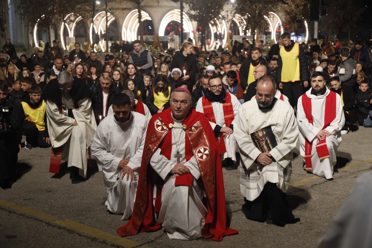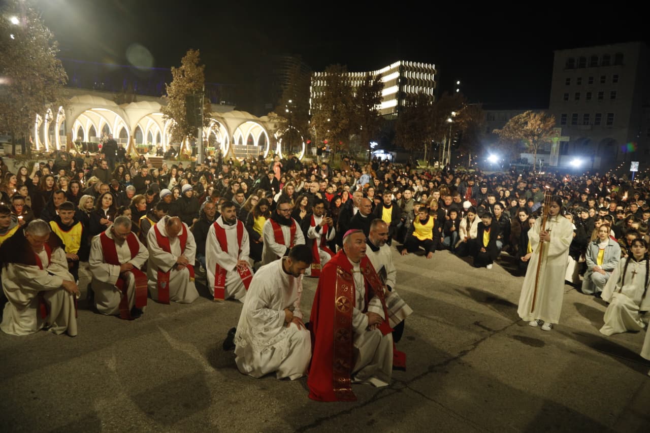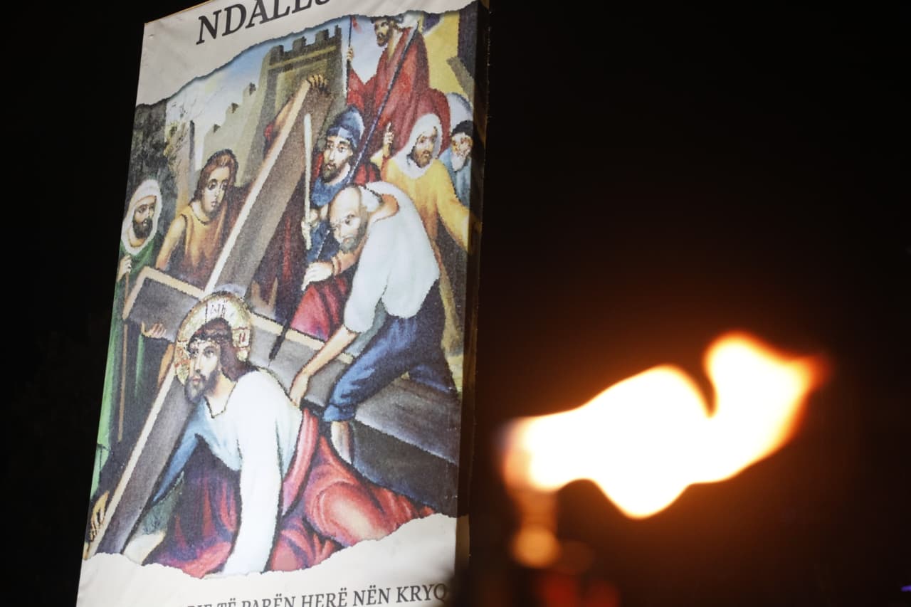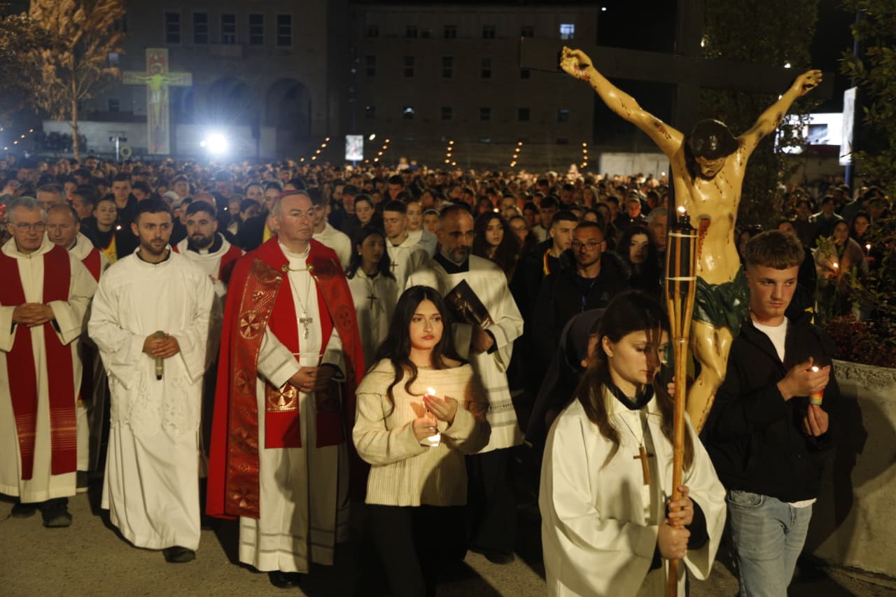Qindra besimtarë katolikë u mblodhën në sheshin nënë Tereza në Tiranë për të kremtuar një nga ritet tradicionale në prag të Pashkës, Udhën e Kryqit, duke ndjekur 14 ndalesat që përkujtojnë mundimet e Jezu Krishtit drejt kryqëzimit. Imzot Arjan Dodaj foli për rëndësinë e reflektimit, solidaritetit dhe afrimit me njëri tjetrin.