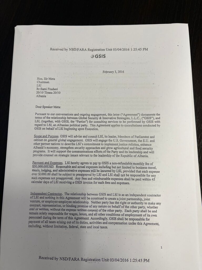 Shuma e paguar nga Lëvizja Socialiste për Integrim dhe Ilir Meta në 2017-n vetëm për lobim në Shtetet e Bashkuara të Amerikës është vetëm maja e ajsbergut të një fushate lobuese që kjo forcë politike dhe Ilir Meta, në atë kohë kryetar i Kuvendit, kanë ndërmarrë në Uashington. Suksesi i kësaj fushate vihet në diskutim nga ngjarjet që rrodhën më vonë, ku sot Ilir Meta, ndoshta pas Sali Berishës është më i injoruari nga politika amerikane.