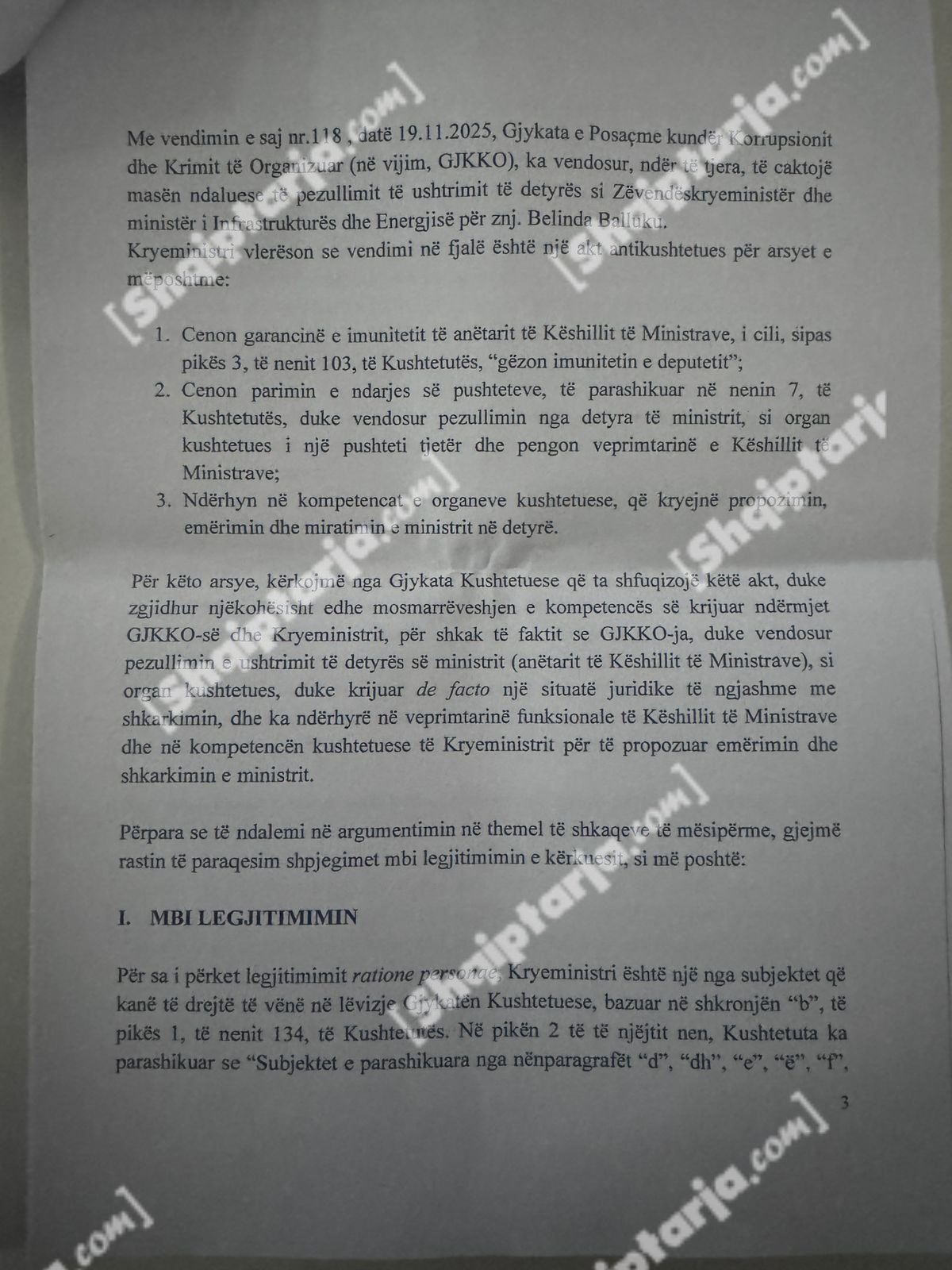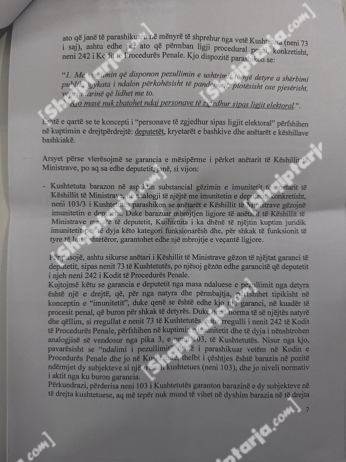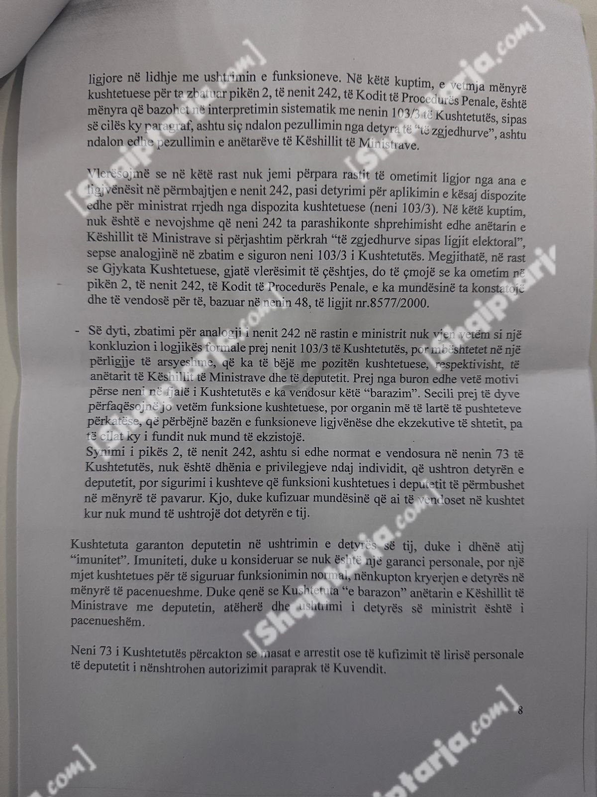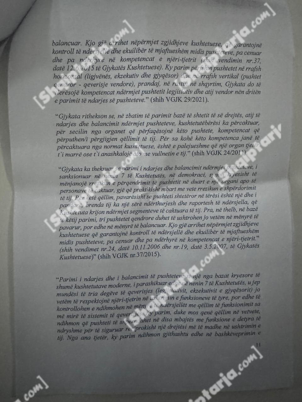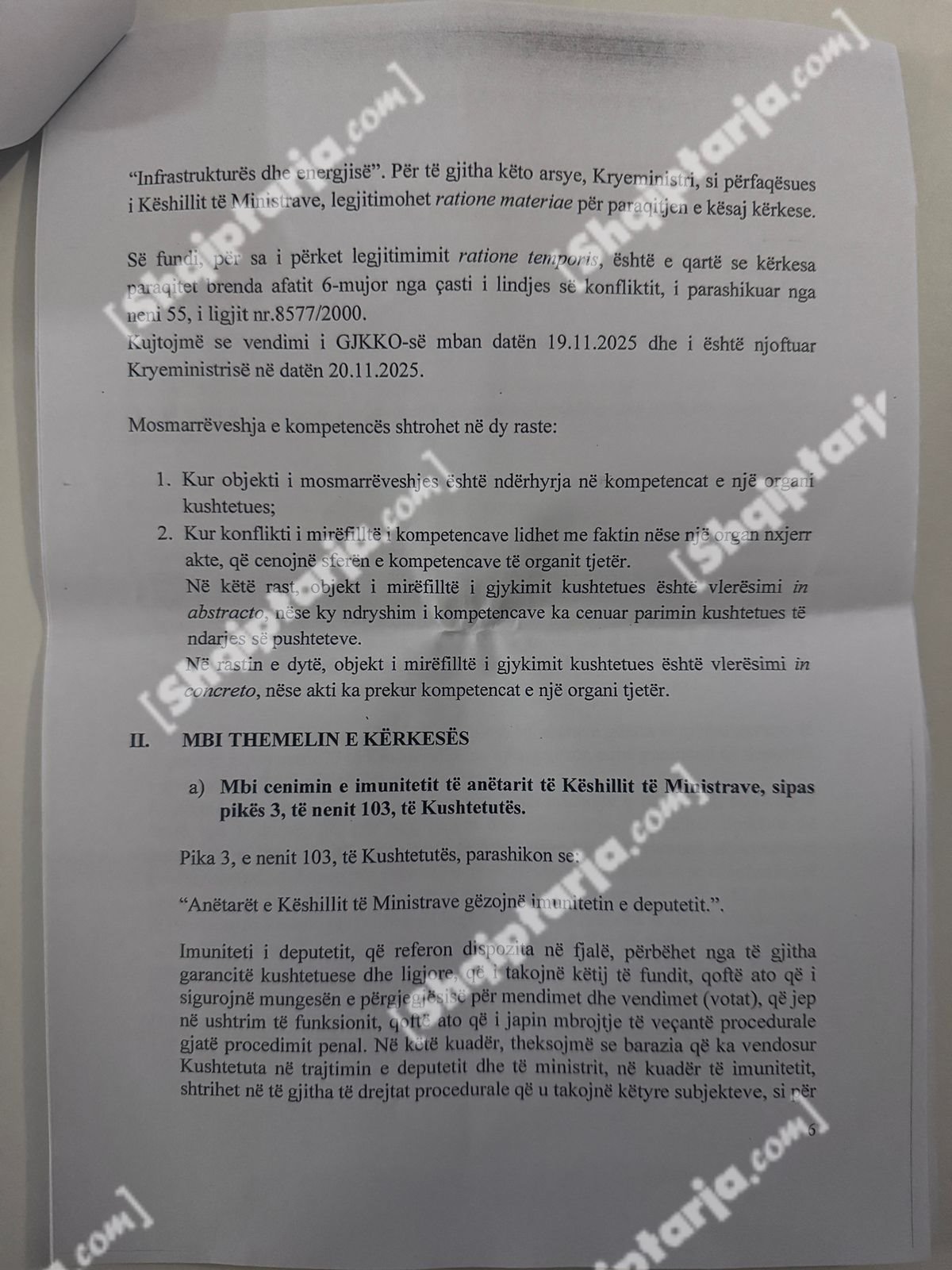 Qeveria argumenton se ky vendim cenon kompetencat e tre institucioneve kushtetuese: Kryeministrit, Presidentit dhe Kuvendit.