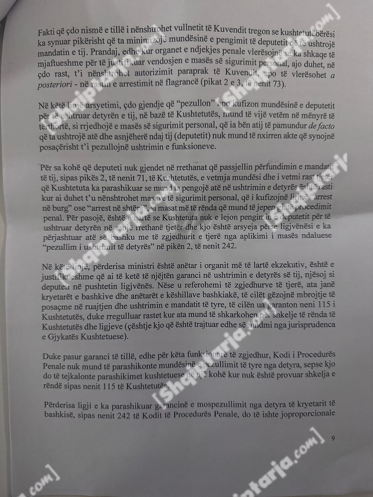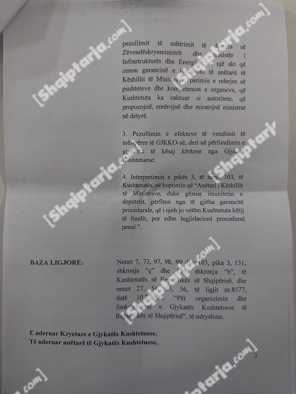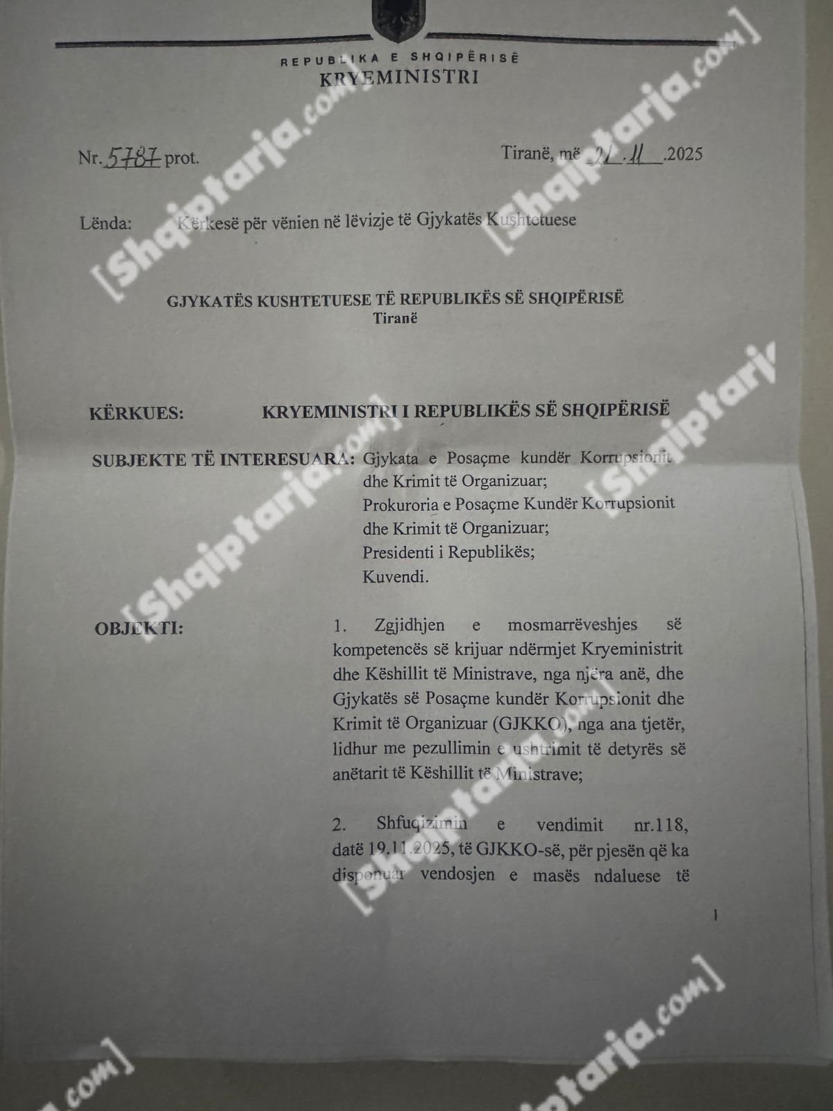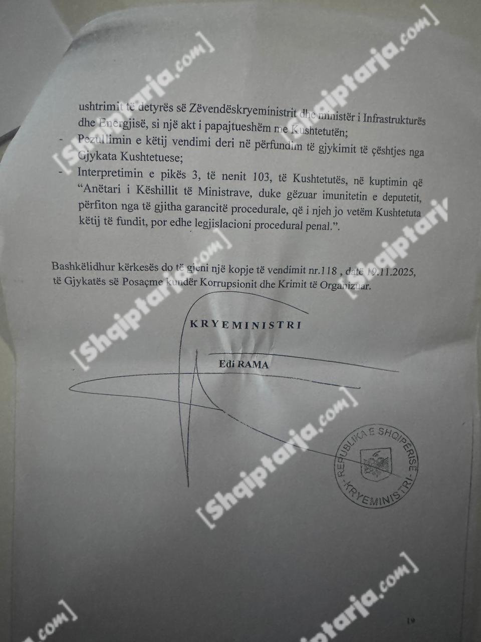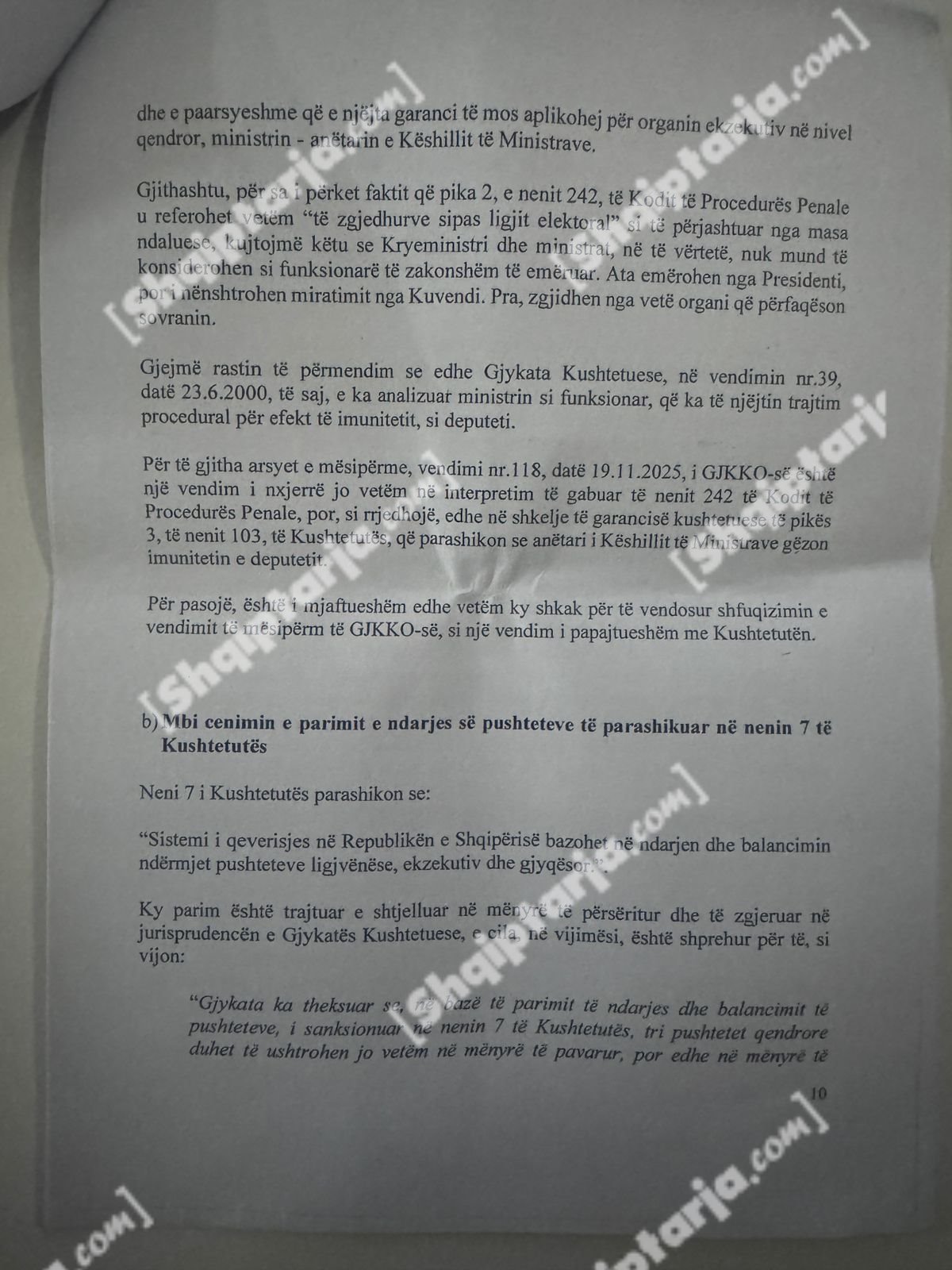 Qeveria argumenton se ky vendim cenon kompetencat e tre institucioneve kushtetuese: Kryeministrit, Presidentit dhe Kuvendit.