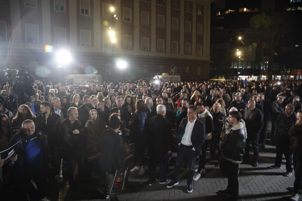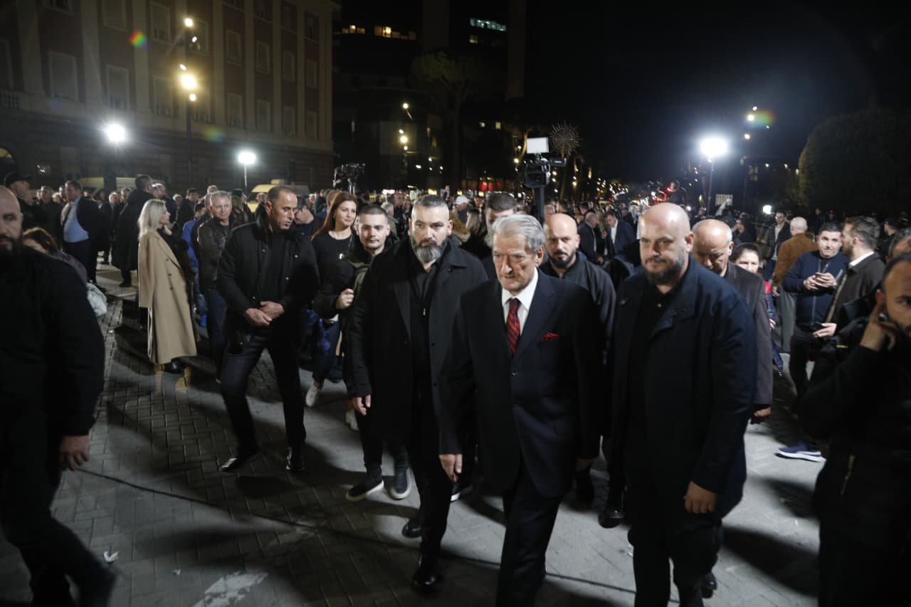 Pasi përfundoi fjalimin e tij në protestën para Kryeministrisë, Sali Berisha, i fokusuar herë pas here nga kamerat, nxinte e steronte.
