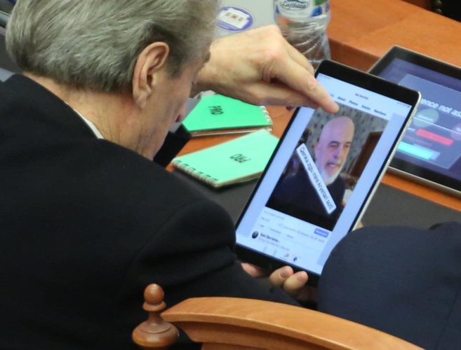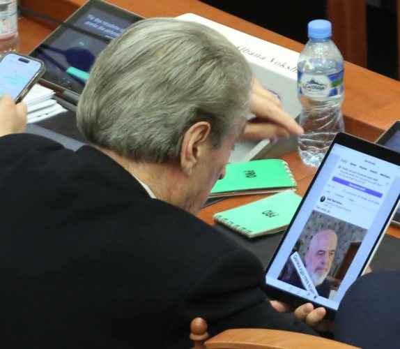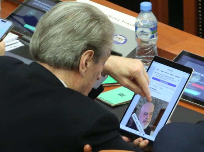 Berisha duke parë një foto të Ramës gjatë punimeve në Kuvend