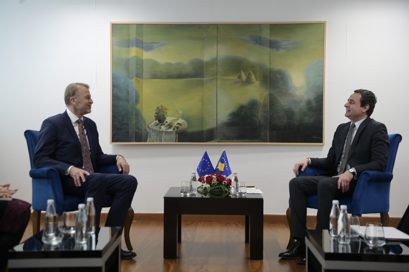 Ambasadori i BE në Prishtinë Aivo Orav me kryeministrin Kurti