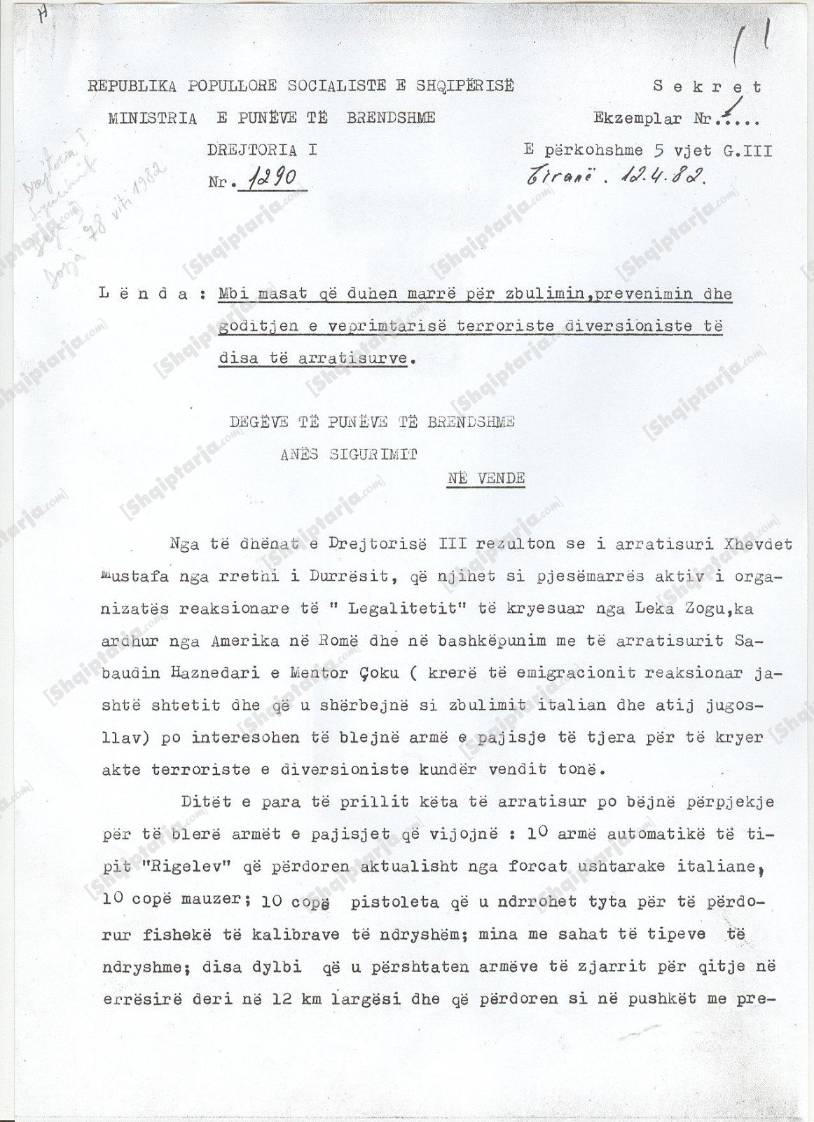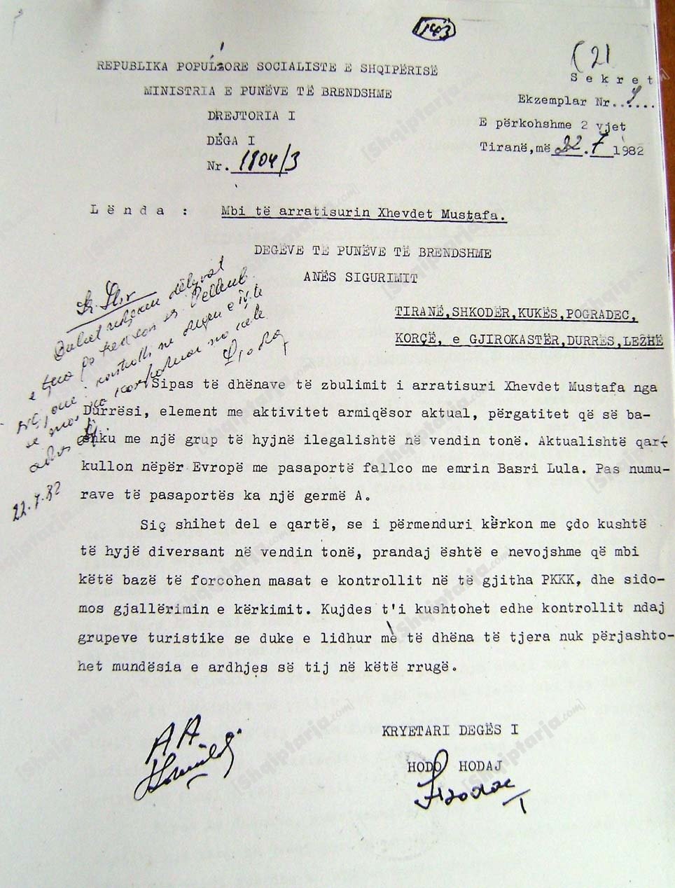 Dokumente të Sigurimit të Shtetit për Xhevdet Mustafën