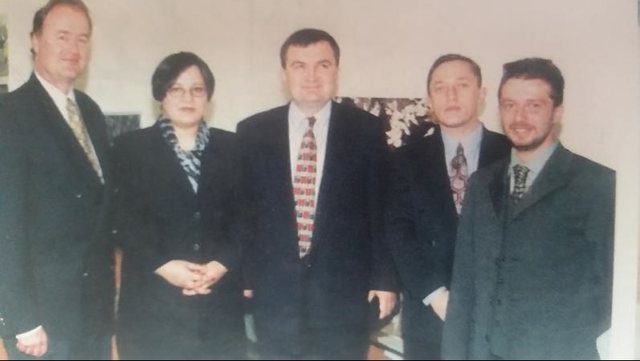 Foto me dëshmitarët, pas celebrimit më 1998; majtas ambasadori zviceran, djathtas Erion Braçe dhe Mustafa Muçi 1998