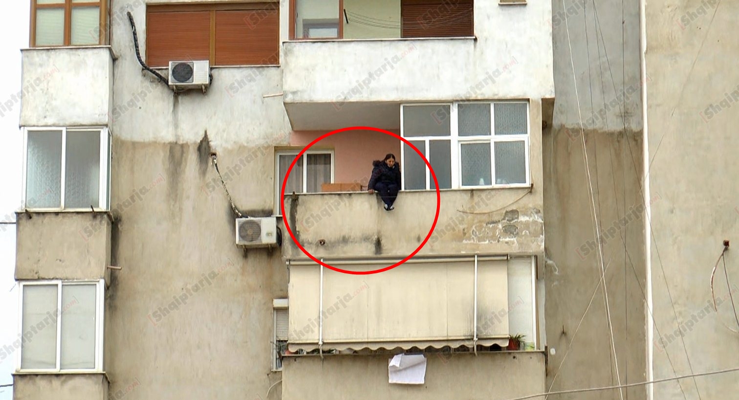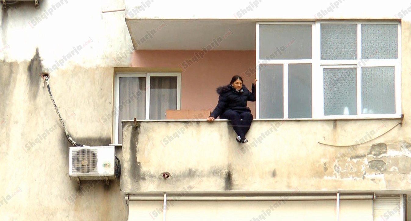 Gruaja që kërcënon se do hidhet nga pallati