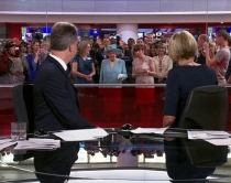 prezantuesit ndalojnë transmetiminI gjithë stafi ka ndaluar punën për disa çaste pas vizitës së Mbretëreshës në redaksinë e televizionit BBC. Stafi i televizionit ka shoqëruar Mbretëreshën duke i treguar madhërisë së saj ambjentet e televizonit.