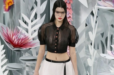 27 Janar 2015, 15:53Supermodelja e familjes Kardashian, Kendall Jenner ka qenë në qendër të vëmendjes në pasarelën e markës Chanel në Javën e Modës në Paris. Kendall ka veshur një fund floral dhe bluzë të shkurtër të tejdukshme në ngjyrë të zezë