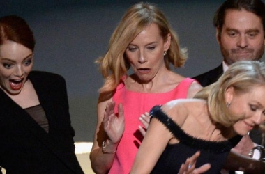 e Emma Stone, ja reagimiSAG Awards është shoqëruar këtë herë edhe me një incident të pakëndshëm. Aktorja Naomi Watts ka dashur që të mbajë fjalën e saj falenderuese pranë mikrofonit kur është penguar në bishtin e gjatë të fustanit të Emma Stone.