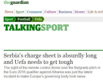 Serbisë, UEFA fillo dënoje ashpër!Prestigjozja britanike “The Guardian” ka sulmuar UEFA-n duke u shprehur se ndaj Serbisë pavarësisht incidenteve të shkaktuara në fushë nga tifozët, nuk është marrë ndonjë masë e ashpër. Ajo kritikon vendimin e UEFA-s, pas sipas saj ndërsa Serbia gjobitet dhe detyrohet të luaj dy ndeshje jashtë, dënimin e vërtetë e merr Shqipëria.