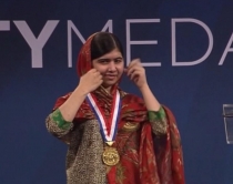 e vajzave nigeriane të zhdukuraFituesja e Çmimit Nobel për Paqen Malala Yousafzai(Jousafzai) ka marrë një tjetër çmim të rëndësishëm, duke qenë fituesja në moshën më të re të Medaljes së Lirisë. Adoleshentja gjatë fjalës së saj bëri thirrje për lirimin e 200 vajzave Nigeriane të marra peng dhe tha se lufta e militantëve islamik nuk është e drejtë, pasi islami është feja e paqes.