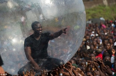 për të shmangur virusin “Ebola”Akon ka bërë një performancë të jashtëzakonshme në konmcertin e tij Afrikan. Ai ka zgjedhur të këndojë brenda një flluske gjigande mbi publikun e tij. Flluska rrotullohej mbi kokat e fansave duke krijuar atmosferë të veçantë. Por, pas