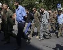 “rrënojat që shkaktuan vetë”Në Snezhnoye, Ukrainë Lindore, një grup ushtarësh ukrainas të zënë rob nga filo-rusët po përdoren për të pastruar rrënojat.