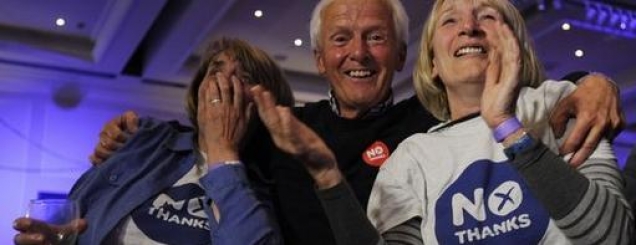 "Jo" ndarjes nga Britania e MadhePas numërimit të pjesës më të madhe të fletvotimeve, 55% janë deklaruar kundë pavarësisë së Skocisë, ndërsa 45% për pavarësi. Pjesëmarrja në votime ishte tejet e lartë, pasi kanë votuar 85% e njerëzve që ishin në listat e votimit.
