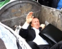 Ukrainë, hedhin në plehra deputetinTani Zhuravsky është një pjestar i Partisë së Zhvillimit Ekonomik dhe ndërsa po ecte mes turmës jashtë pralamentit është tërhequr me forcë duke përfunduar brenda kazanit me plehra. Protestuesi që e hodhi e mban brenda duke mos e lejuar të dalë jashtë