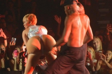 vë të pasme fallso gjigande mbi skenëMiley Cyrus ka çmendur publikun e saj teksa performonte në Puerto Rico gjatë koncertit “Bangerz”. Këngëtarja shihet me të pasme fallso duke imituar Nicki Minaj. 21-vjeçares duket se I ka ecur ideja e saj pasi ka tërhequr vëmendjen e publikut.