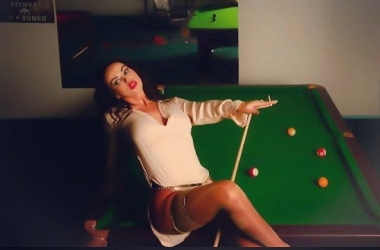 që do dhe gjuaj me të parën”Shkëndije Mujaj ka “ndezur” rrjetet sociale me provokime që vetëm ajo di t’i bëjë. Shkëndija shihet mbi një bilardo e veshur me fustan të bardhë të shkurtër duke mbajtur shkopin e bilardos midis këmbëve seksi. “Zgjidh topin që do dhe