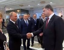 me presidentin ukrainas,PoroshenkoPresidenti i Rusisë, Vladimir Putin, dhe ai i Ukrainës, Petro Poroshenko, kanë shtrënguar duart në hapje të samitit në Minsk të Bjellorusisë.
