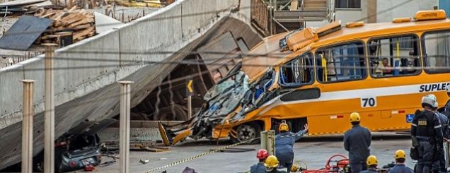 shembet mbikalimi, 2 viktimaNjë urë e autostradës që të çon nga aeroporti në stadiumin “Minerirao” të Belo Horizontes në Brazil, ku do të luhet një nga gjysmëfinalet është shembur duke zënë poshtë një autobus, një veturë dhe një kamion. Sipas ekipeve të emergjencës, deri më tani raportohen dy persona të vdekur dhe dhjetëra të plagosur ndërsa mendohet se shumë të tjerë gjenden nën rrrënoja.