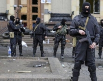 OSBE:Kujdes,rrezik për luftë civileGjatë një seance në orën 12:20 me orën lokale, Këshilli i Donbass votoi në mënyrë unanime për të formuar Republikën e Donetskut si dhe kërkuan mbajtjen e një referendumi, jo më larg se 11 maji. OSBE ka paralajmëruar fillimin e një lufte civile. (Në foto protestuesit pro-rusë pasi kanë marrë godinat qeveritare)